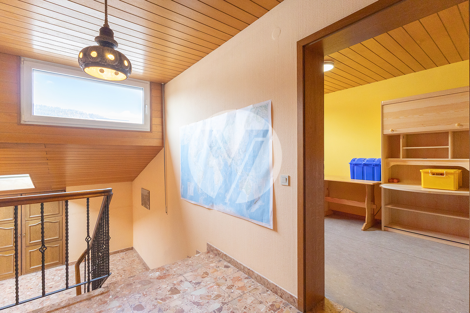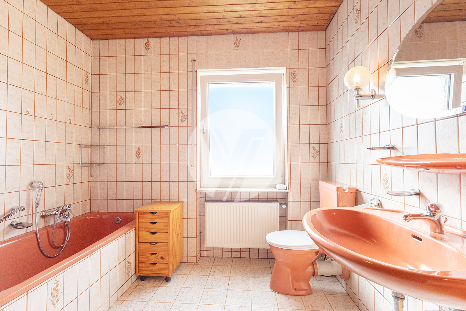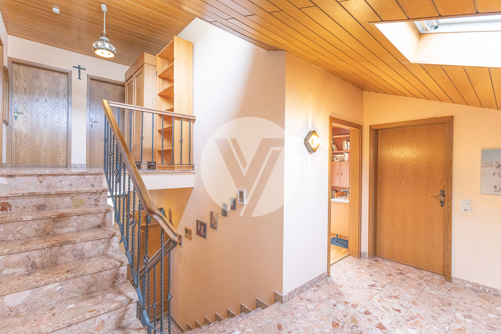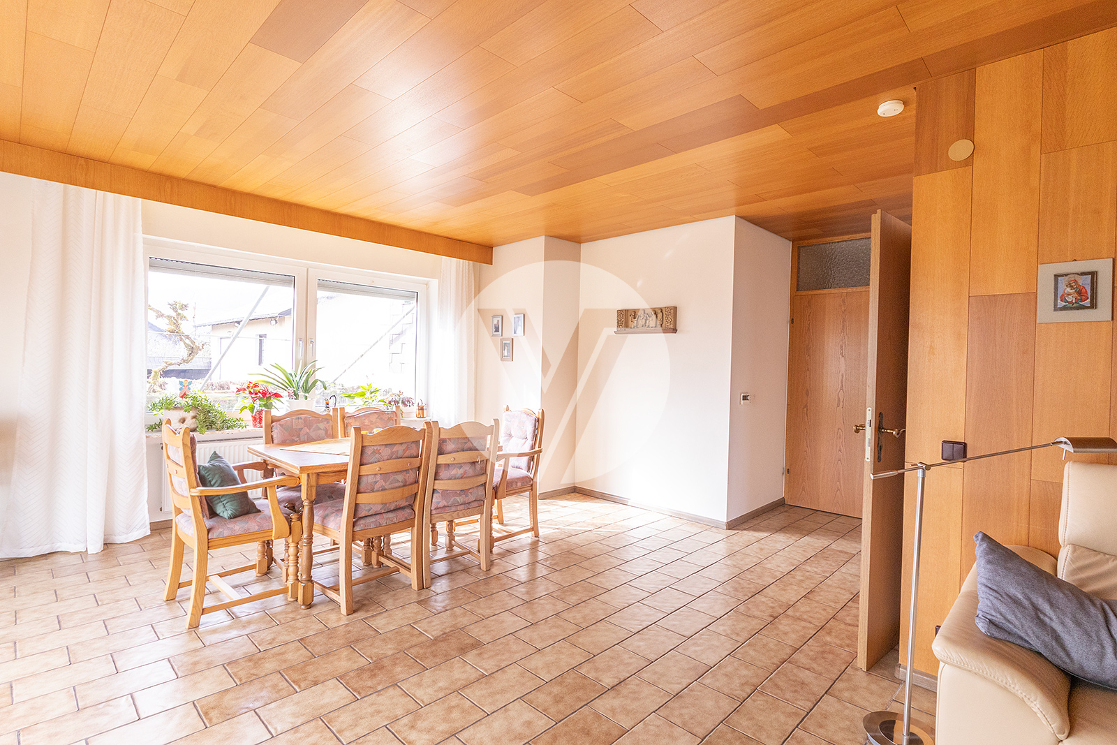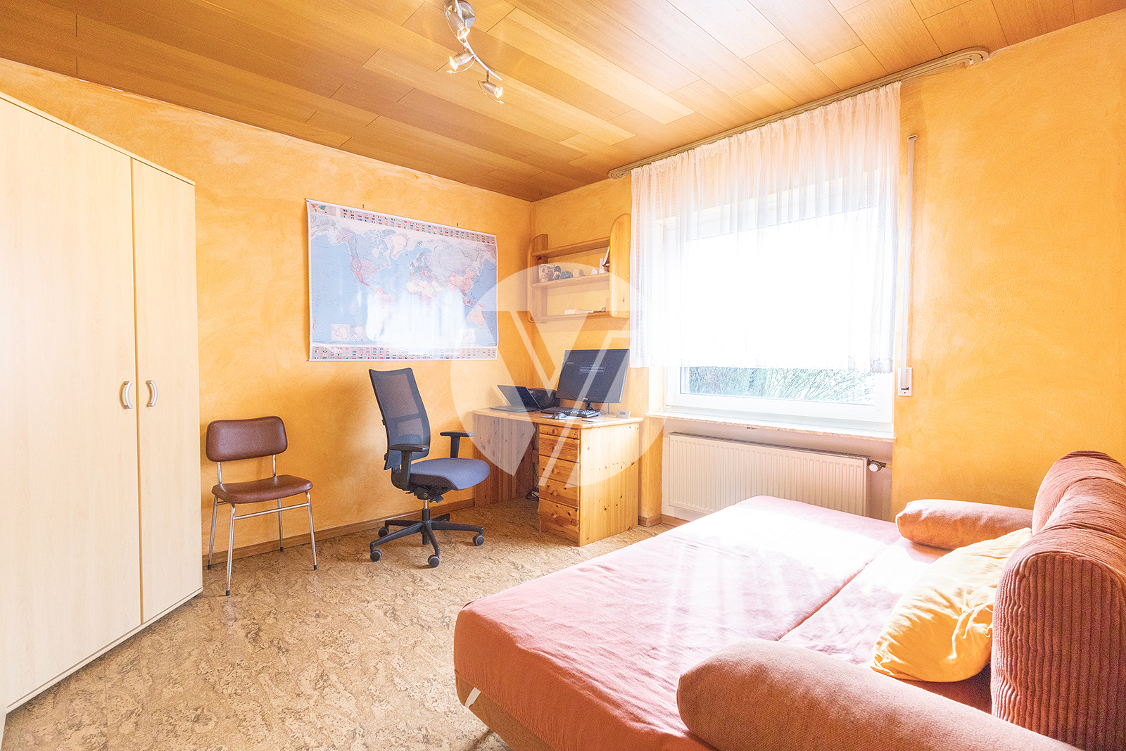 Willkommen in diesem interessanten Architektenhaus, das im Jahr 1980 erbaut wurde und durch seine individuelle Architektur besticht. In zentraler Lage von Föhren gelegen, vereint dieses sehr solide gebaute Gebäude Komfort und gute Erreichbarkeit. Es präsentiert sich im baujahrsgerechten Zustand, was die Möglichkeit bietet, das Objekt nach Ihren eigenen Vorstellungen zu renovieren und anzupassen. Die großzügigen Wohnflächen des Familienhauses erstrecken sich über insgesamt drei Etagen, wobei sich die Grundrisse durch einen interessanten Etagenversatz auszeichnen. Die Immobilie verfügt über zwei abgeschlossene Wohneinheiten, die jeweils über separate Eingänge zugänglich sind. Die Wohnung im Untergeschoss offeriert eine Fläche von ca. 60 m² und eignet sich hervorragend zur klassischen Vermietung, für Gäste oder als komfortables Office. Die Hauptwohneinheit in den oberen Geschossen umfasst beeindruckende ca. 182 m² Wohnfläche und ist ideal für die große Familie. Zusätzlich bietet die Immobilie eine Nutzfläche von ca. 120 m², die vielfältige Möglichkeiten zur individuellen Gestaltung eröffnet. Die geräumige, überlange Garage nebst großem Bereich für Werkstatt oder/oder zusätzlicher Abstellfläche bilden einen großen Teil dieser Nutzfläche. Des Weiteren befinden sich im hinteren Kellerbereich noch die Waschküche, der Heizungsraum sowie ein weiterer Abstellraum. Ein ganz besonderer Ort ist die sonnige, überdachte Süd-West-Terrasse, die Ihnen den perfekten Rückzugsort für entspannte Stunden im Freien bietet. Umgeben von Gärten und Grünflächen ist dies ein wunderschöner Ort für Erholung und Freizeitaktivitäten. Diese besondere Immobilie überzeugt nicht nur durch ihre interessante Grundrissgestaltung, sondern auch durch ein umfangreiches Nutzungspotential. Ob als Zuhause für Ihre große Mehrgenerationen-Familie oder für eine klassische Untervermietung der separaten Einliegerwohnung. Diese Immobilie hält zahlreiche Möglichkeiten für Sie bereit.