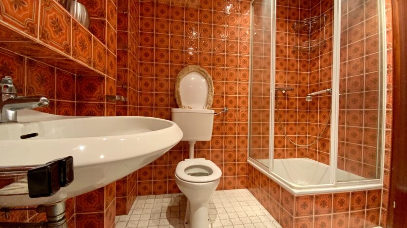 Eine massive Treppe führt zum Dachgeschoss. Hier befinden sich der Flur, 3 Schlafzimmer und ein Badezimmer welches mit Dusche, Waschbecken und Toilette ausgestattet ist.