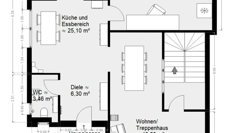Küche/Essbereich: ca. 25,10 m²