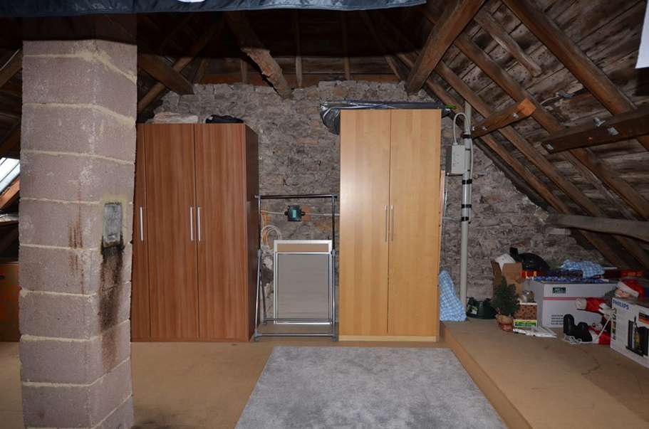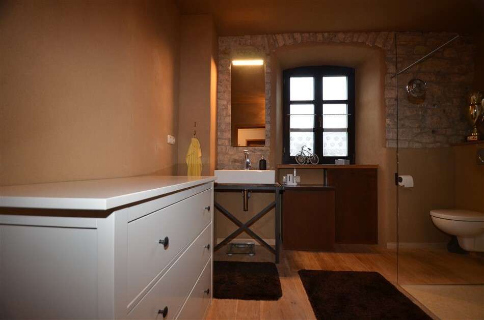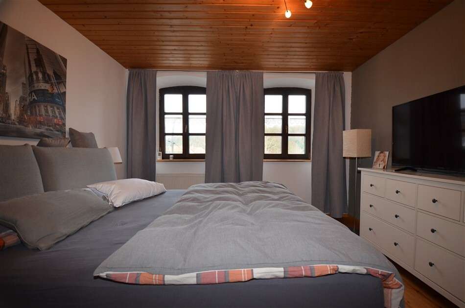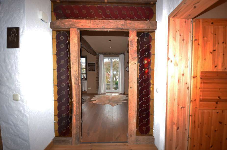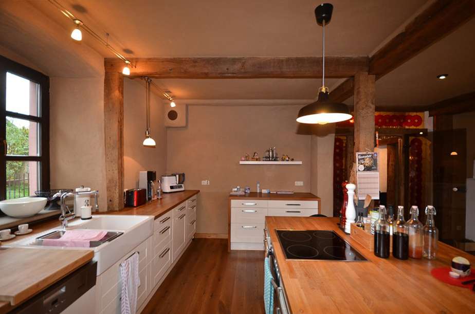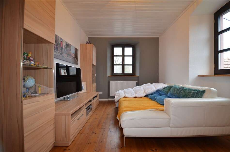Das hier angebotene historische Landhaus wurde in den letzten Jahren liebevoll, aufwendig und modern renoviert. Das Haus wurde um 1841 erbaut. Weiterhin befindet sich auf dem Grundstück ein weiteres Haus welches zur Zeit als Ferienwohnung genutzt wird und eine entsprechende Rendite einbringt. Im Sockelgeschoss des Ferienhauses befinden sich zwei Garagen, sowie die Heiztechnik für beide Häuser. Das Landhaus wurde mit Bruchstein errichtet, dieser wurde im Innenraum teilweise freigelegt und bildet einen wunderschönen Kontrast zu den mit Lehm verputzten Wänden. Die ehemalige Raumaufteilung wurde geändert. Zwischenwände wurden entfernt. Dadurch wurde das Ständerwerk freigelegt und rundet mit den klassische Fliesen und Dielenböden den historischen Baustil des Hauses ab.