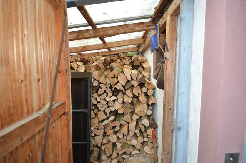 Centrale verwarming op olie, warm water via een doorstroomboiler, dubbele beglazing met houten kozijnen.