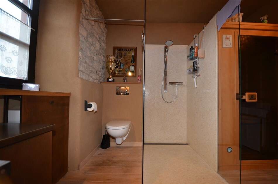 Dit historische landhuis is de afgelopen jaren met liefde, grondig en modern gerenoveerd. Het huis werd oorspronkelijk gebouwd rond 1841. Op het terrein bevindt zich ook een ander huis, dat momenteel als vakantiewoning wordt verhuurd en een overeenkomstige inkomstenbron vormt. In de kelder van het gastenverblijf bevinden zich twee garages en de verwarmingsinstallatie voor beide huizen. Het landhuis is gebouwd met natuursteen, waarvan een deel in het interieur zichtbaar is gebleven, wat een prachtig contrast vormt met de leemgepleisterde muren. De oorspronkelijke indeling van de kamers is gewijzigd. Scheidingswanden zijn verwijderd, waardoor de houten constructie zichtbaar is geworden. Deze constructie, samen met de klassieke tegels en plankenvloer, sluit perfect aan bij de historische architectuurstijl van het huis.