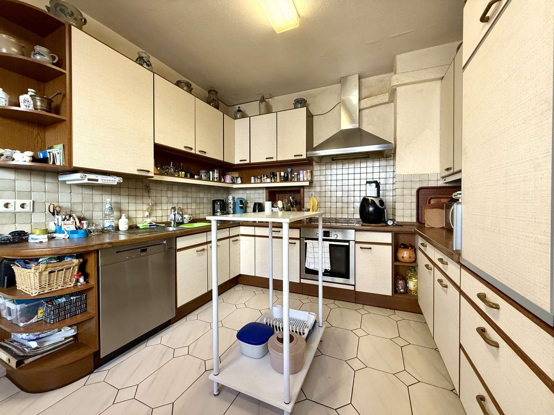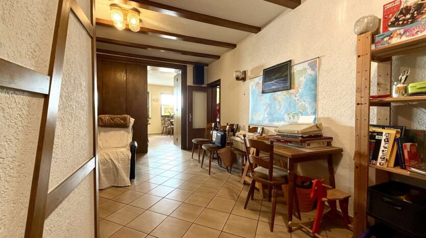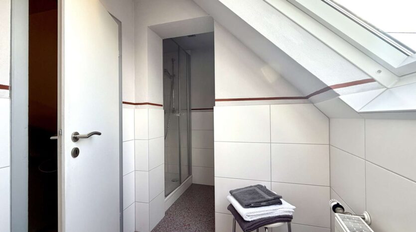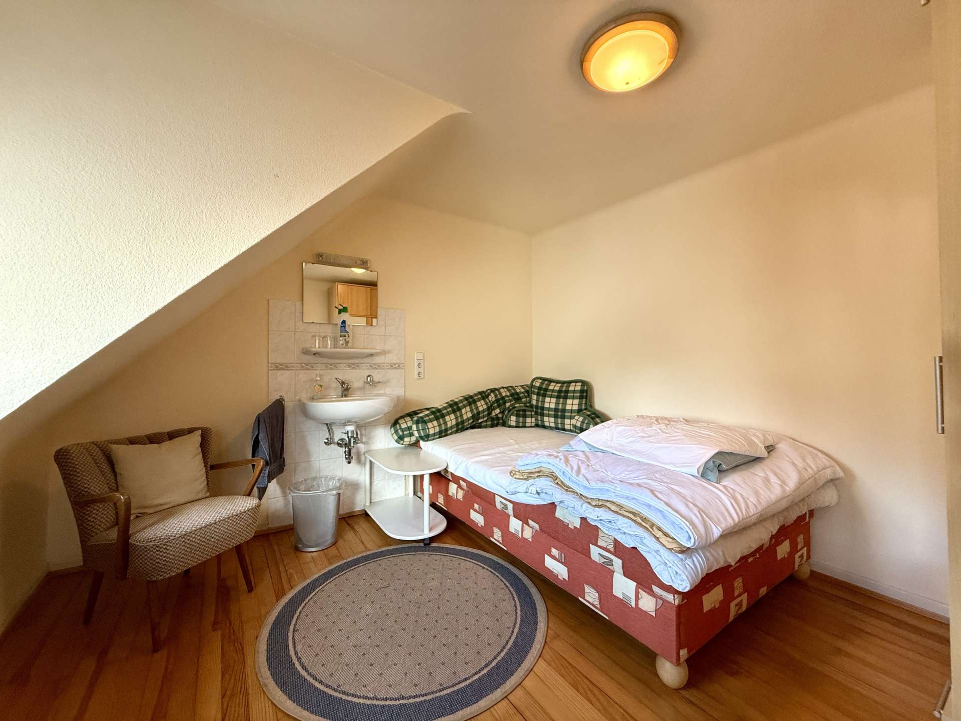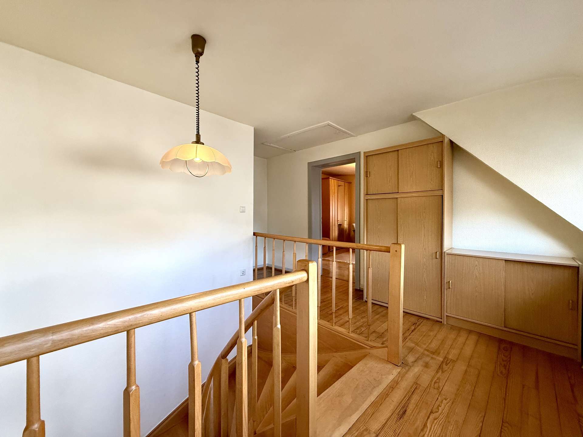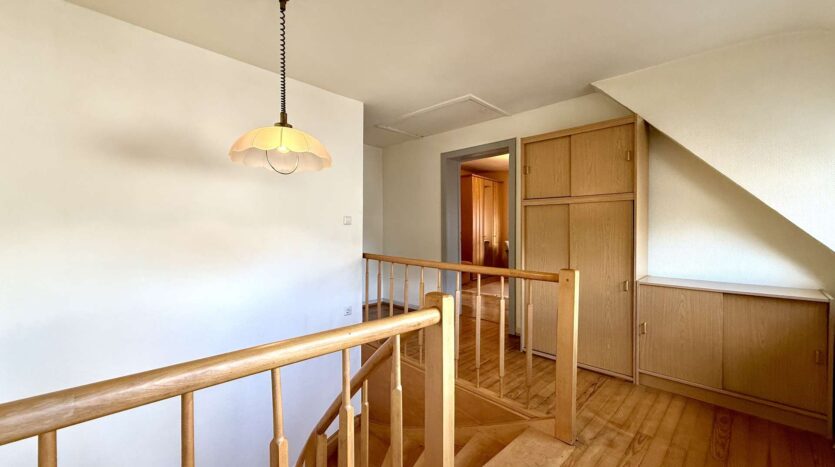 Der gedämmte Speicher ist über eine Zugtreppe erreichbar und bietet zusätzlichen Stauraum. Ein weiterer Kaminanschluss ist vorhanden und ermöglicht den Anschluss einer Ofenheizung.