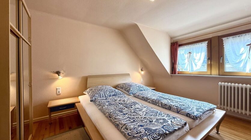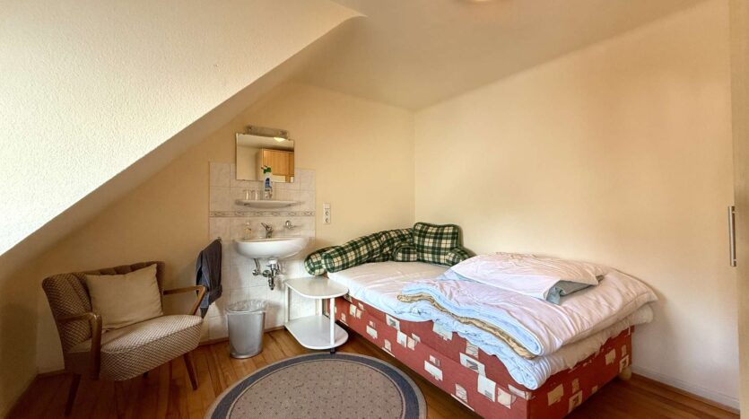 Im 2. Obergeschoss stehen Gästezimmer zur Verfügung, ausgestattet mit zweifach verglasten Fenstern (1998), PVC-Böden. Eine Holztreppe verbindet die Etagen. Über eine Zugtreppe gelangt man auf den gedämmten Speicher, der zusätzlichen Stauraum bietet. Die Bäder und Gästezimmer wurden 2009 komplett saniert.