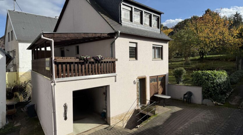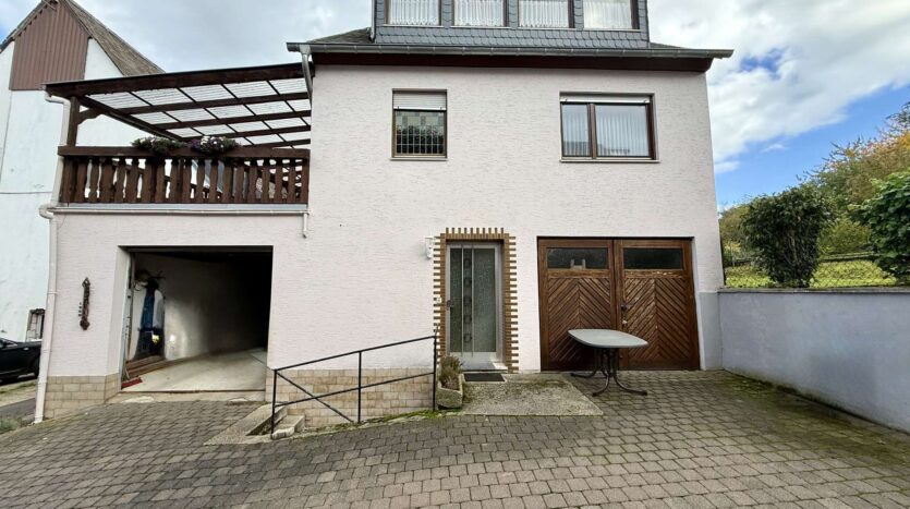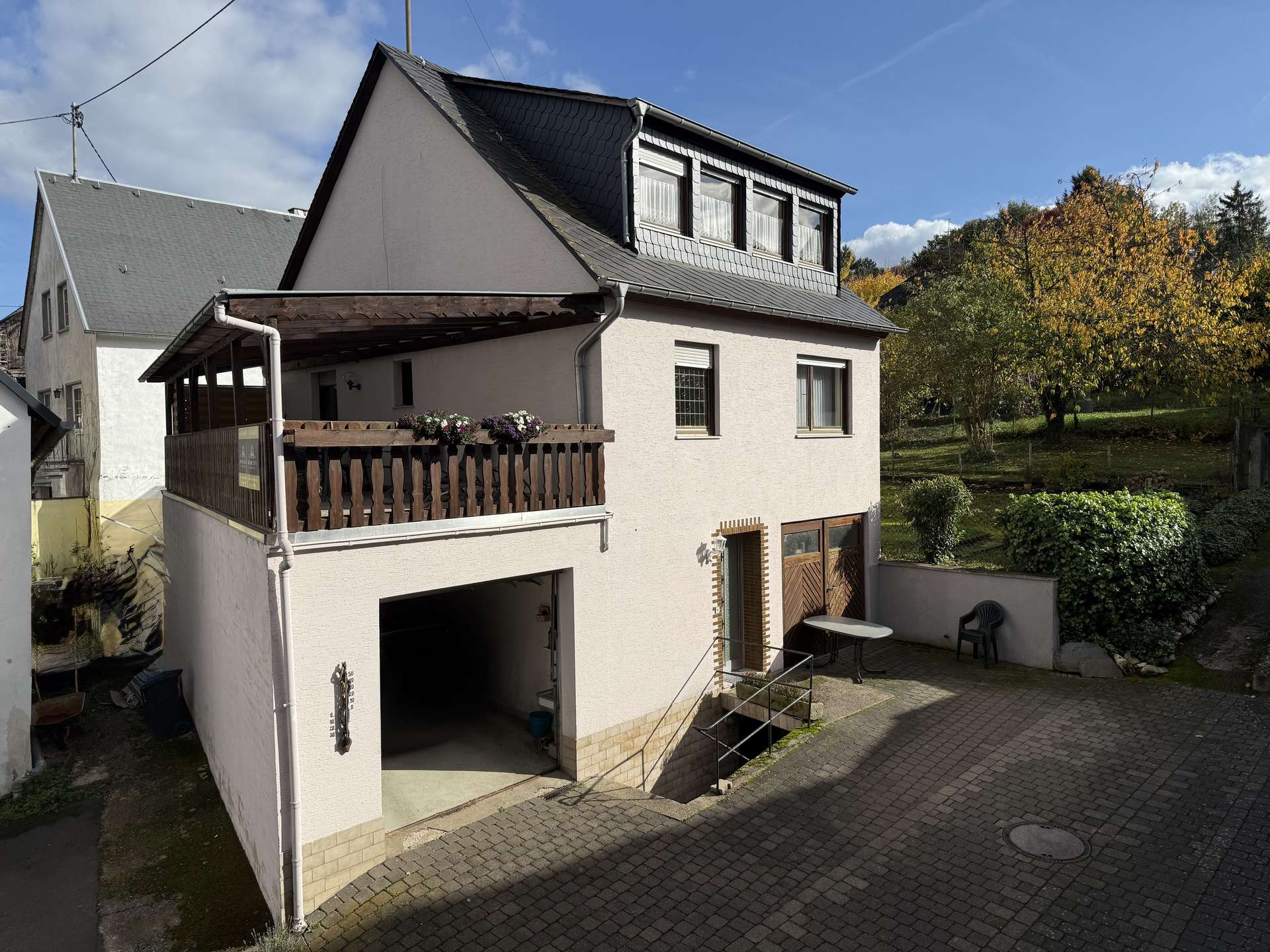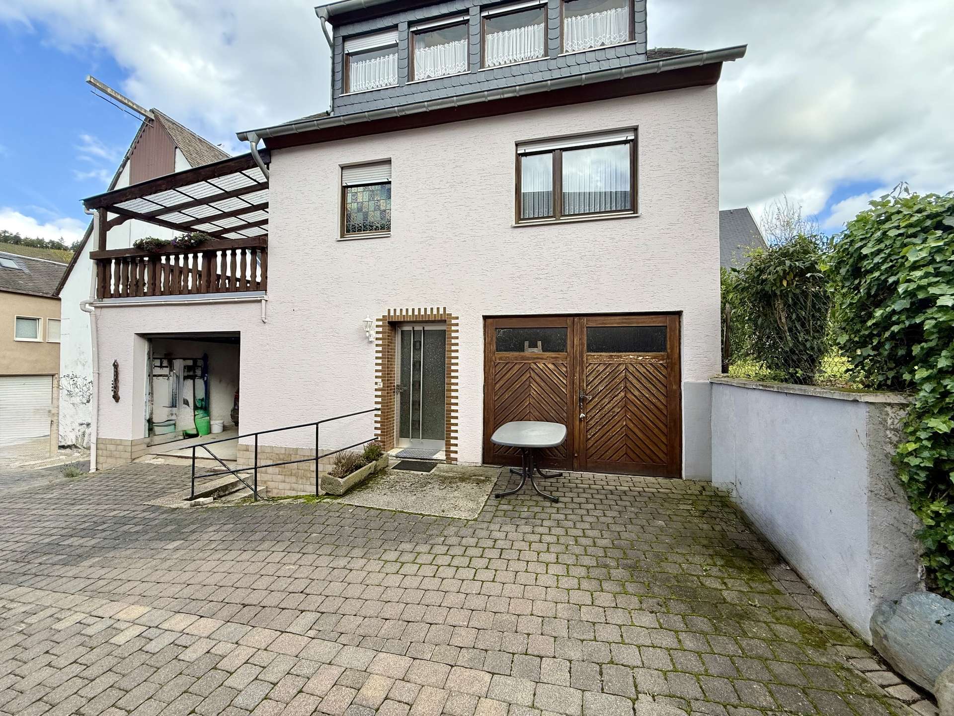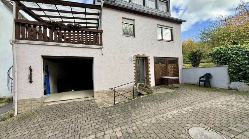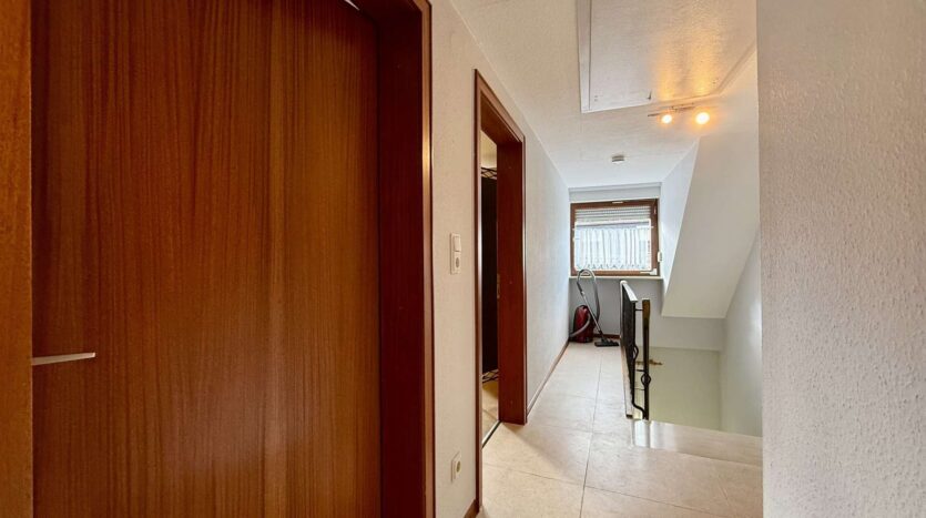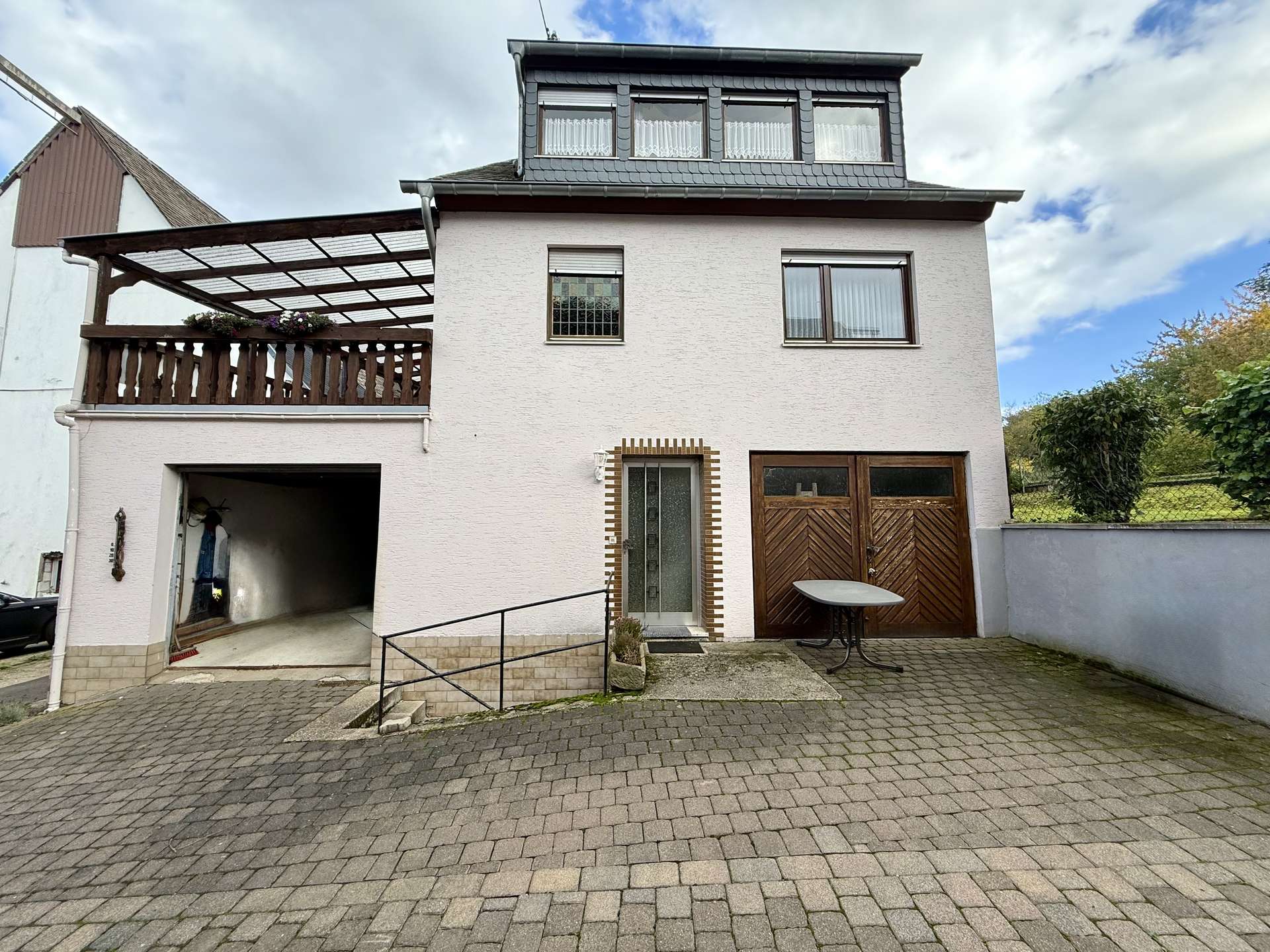 Besonderes Highlight ist der große, geflieste und überdachte Balkon, der einen geschützten Außenbereich bietet. Ein weiterer Balkon auf der Rückseite des Hauses schafft zusätzliche Rückzugsmöglichkeiten.