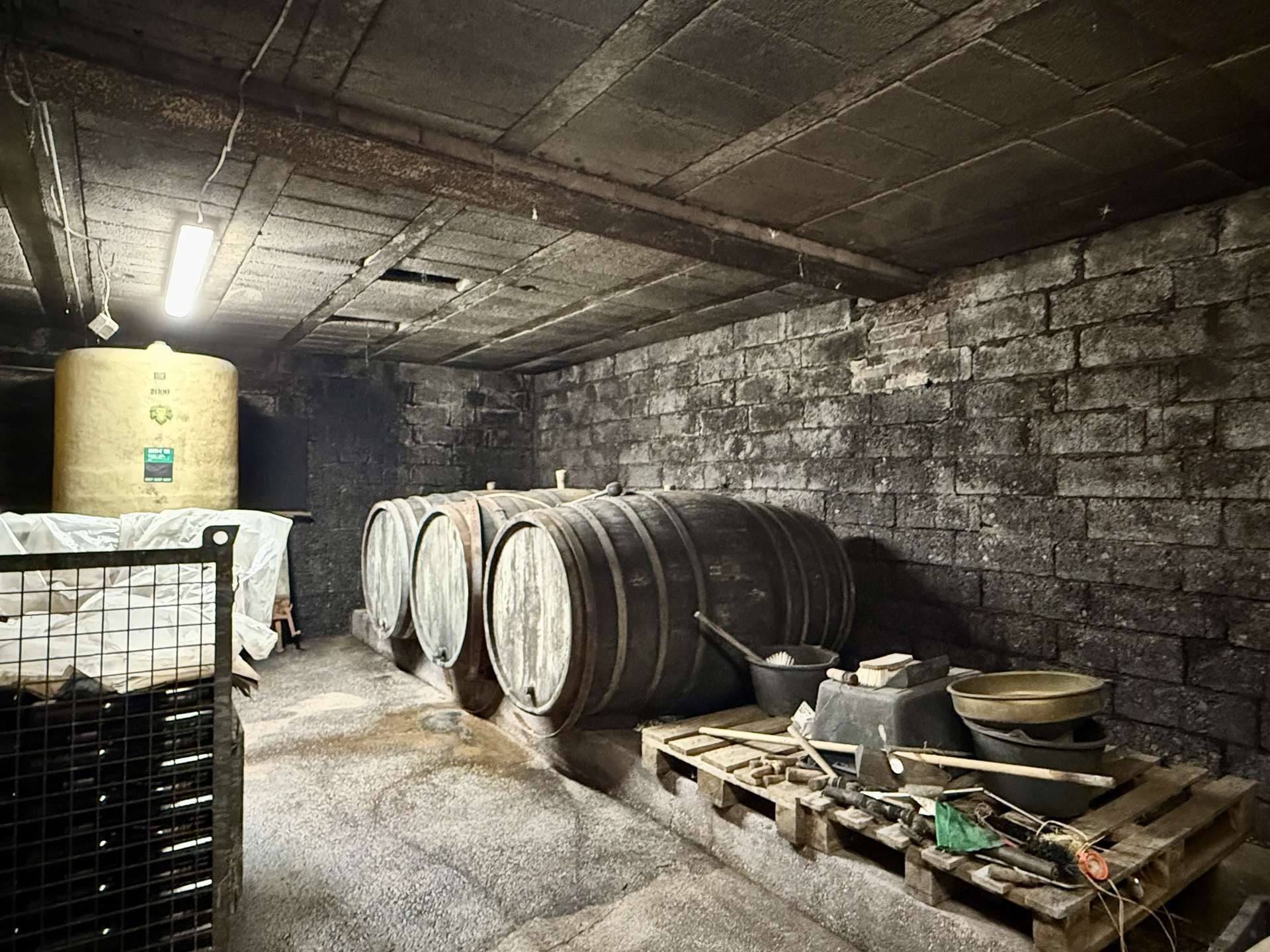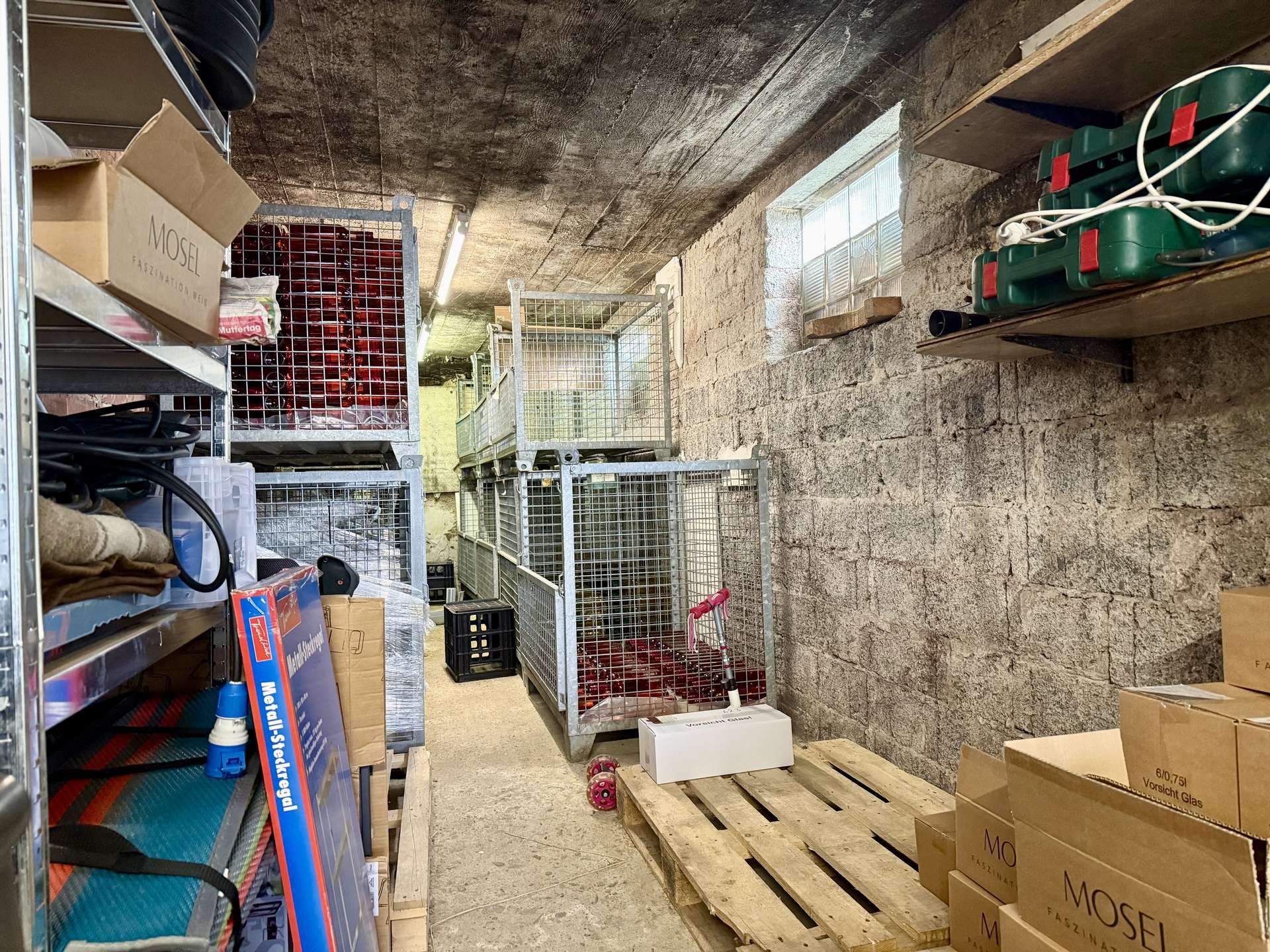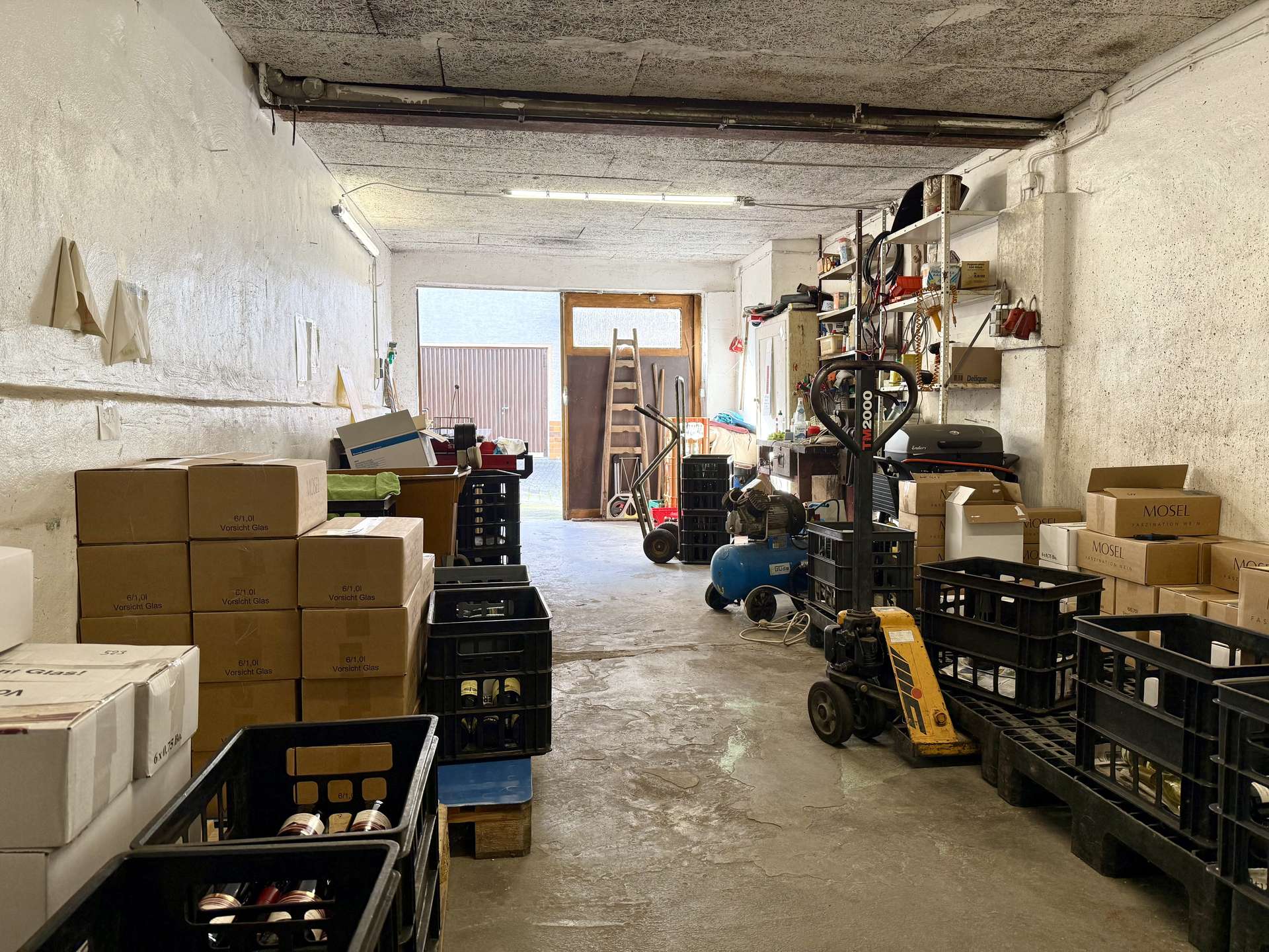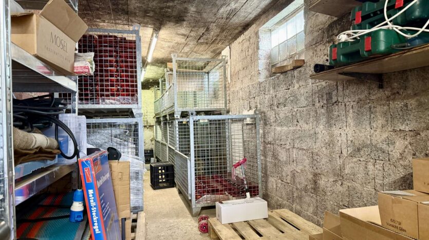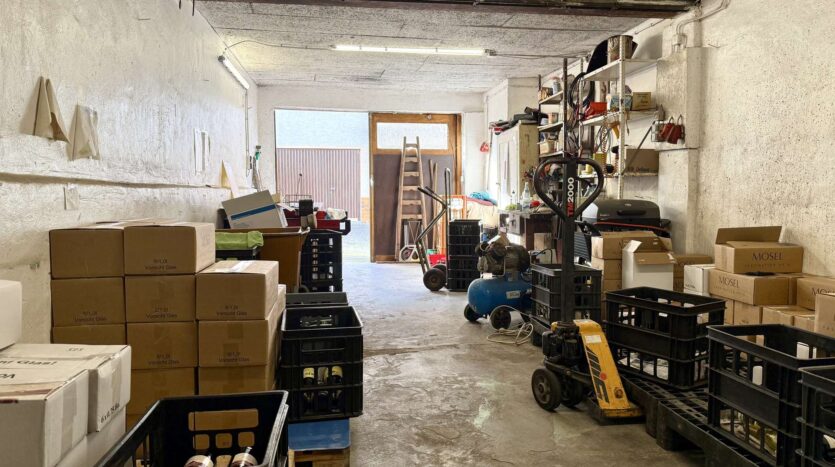 Das Haus verfügt über zwei Garagen, wobei eine davon mit einem Aufzug zur Weinlagerung ausgestattet ist – ideal für Weinliebhaber oder Sammler.