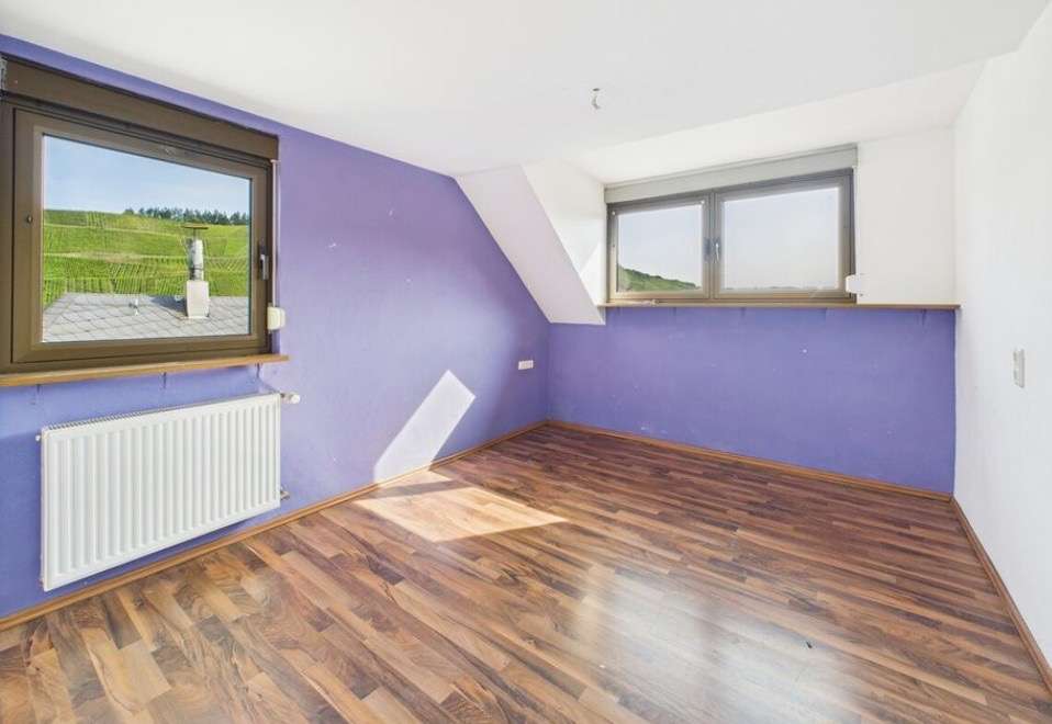 Ein besonderes Highlight ist die Terrasse mit ihrem malerischen Blick auf die umliegenden Weinberge – ein Ausblick, der das typische Flair der Moselregion direkt nach Hause bringt. Der Garten lädt zum Entspannen und Gestalten ein und rundet dieses attraktive Anwesen ab.
