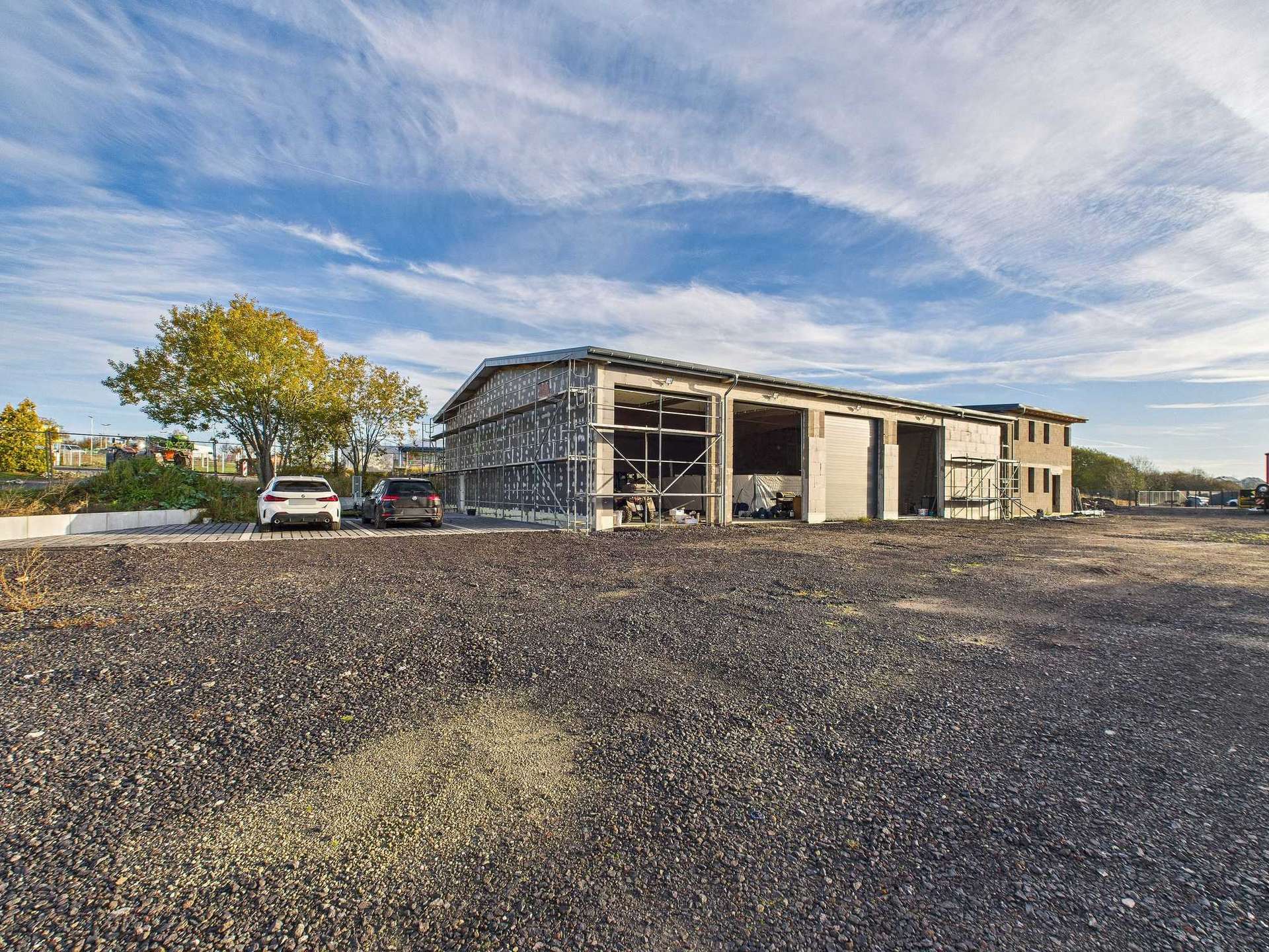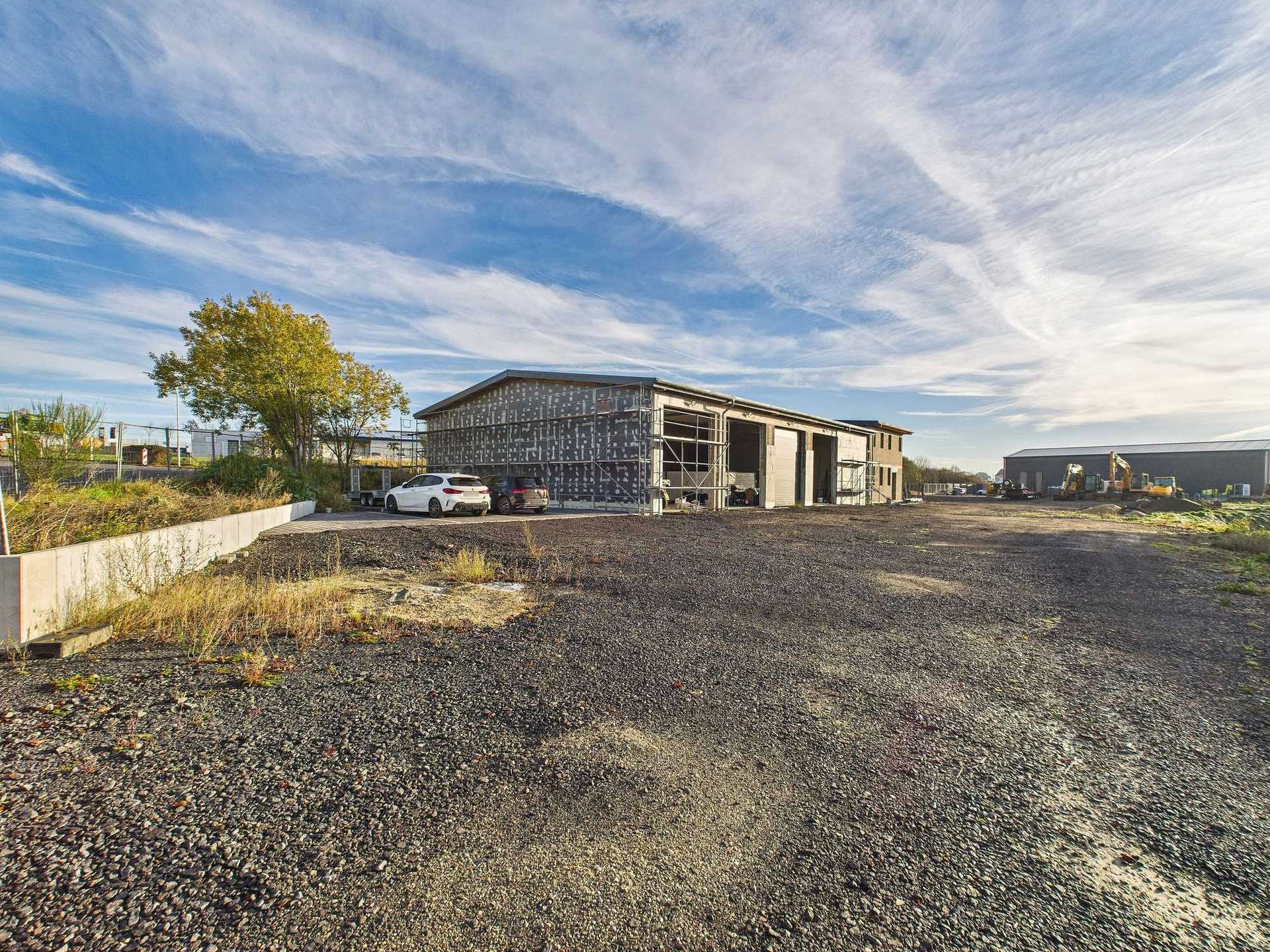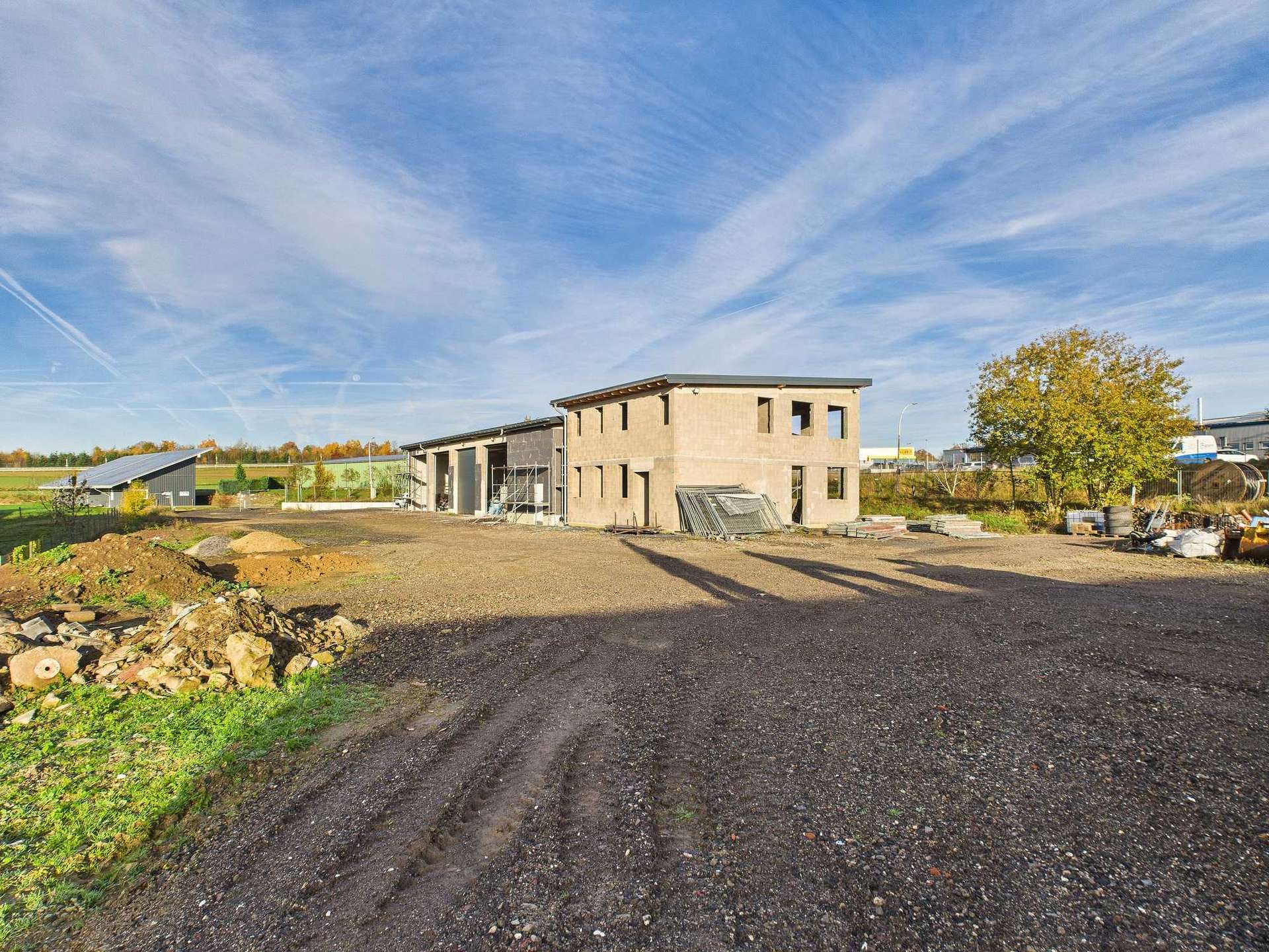 Die Halle und das Bürogebäude wurden im Jahr 2021 massiv errichtet.