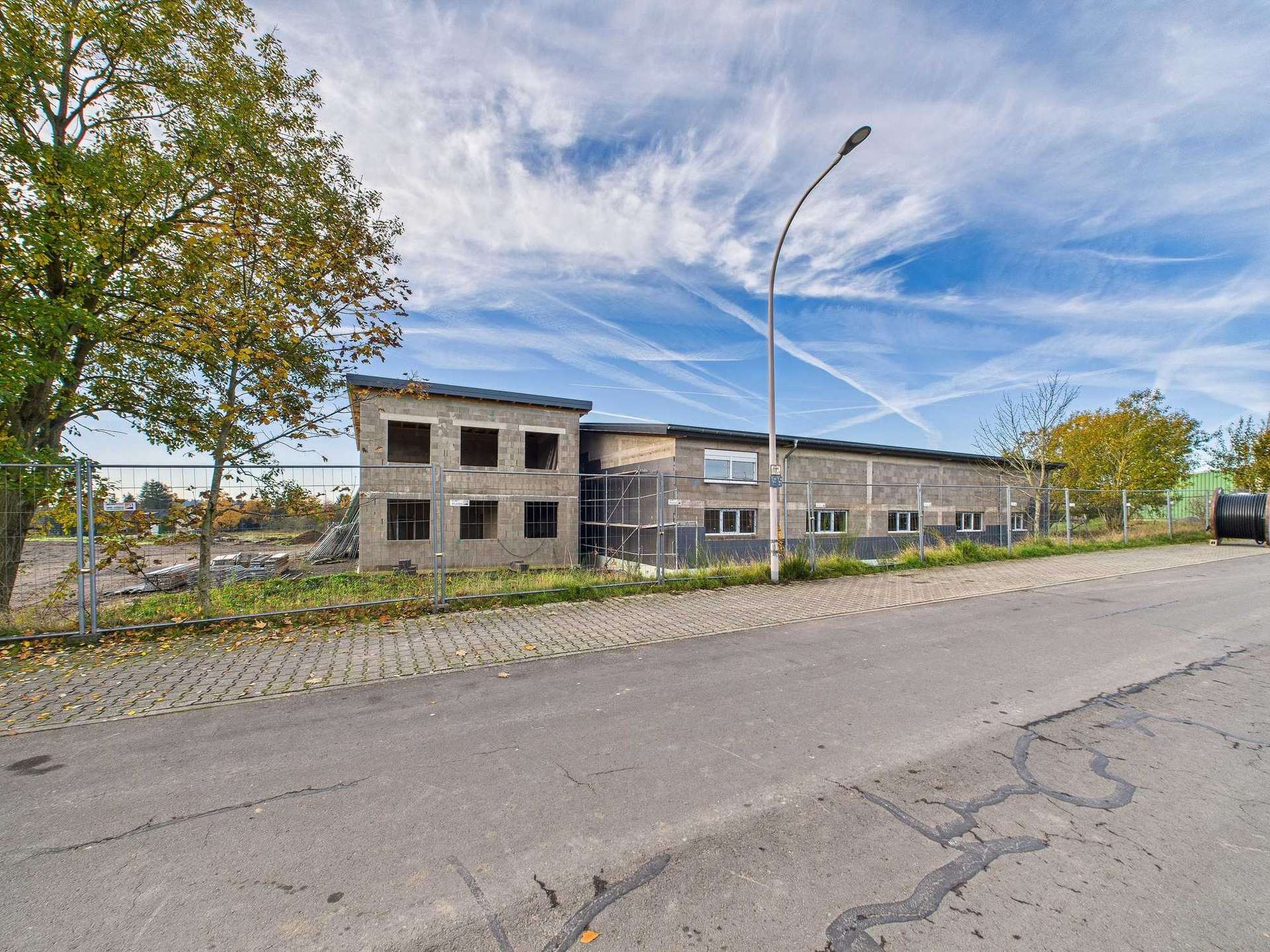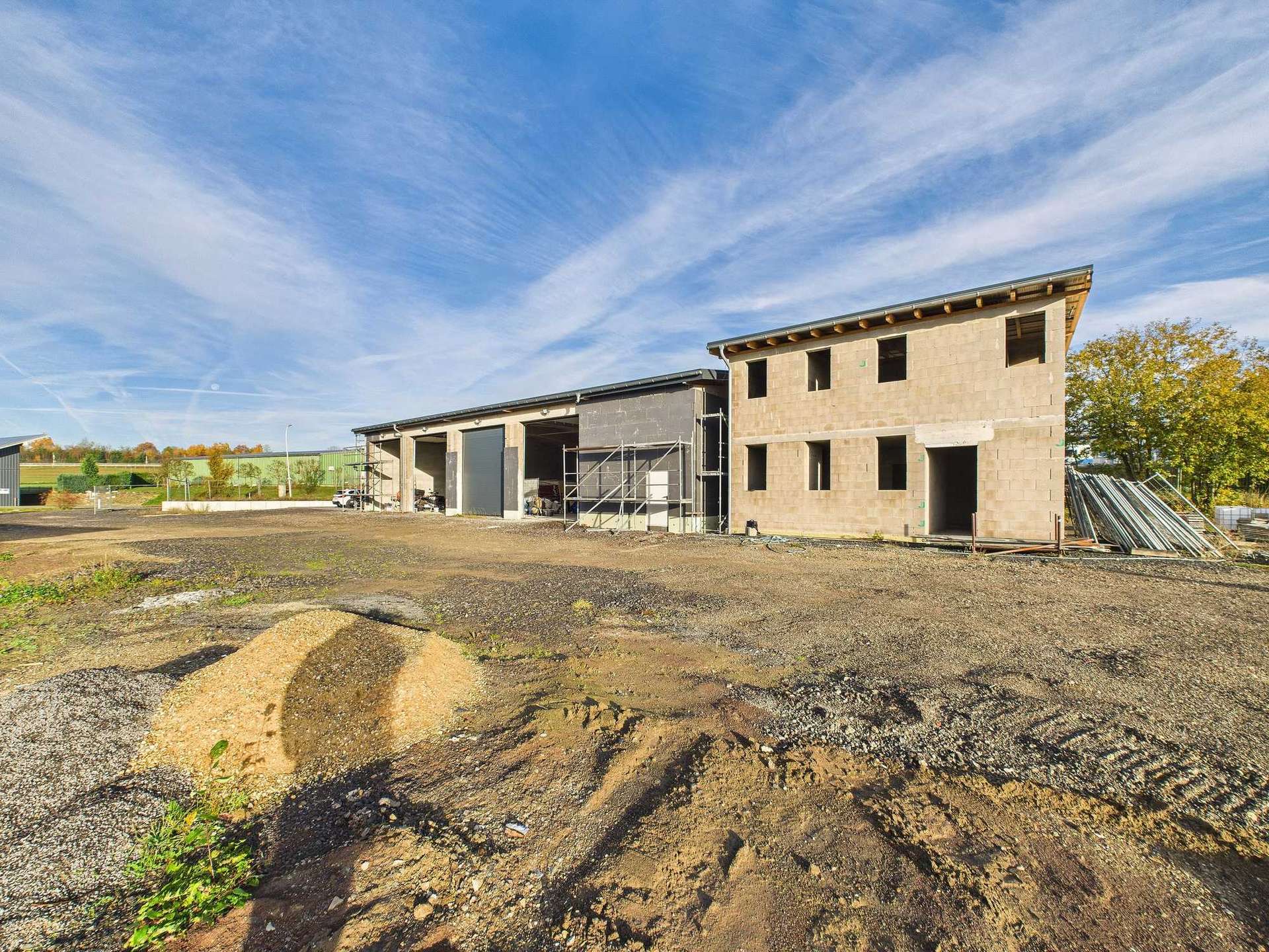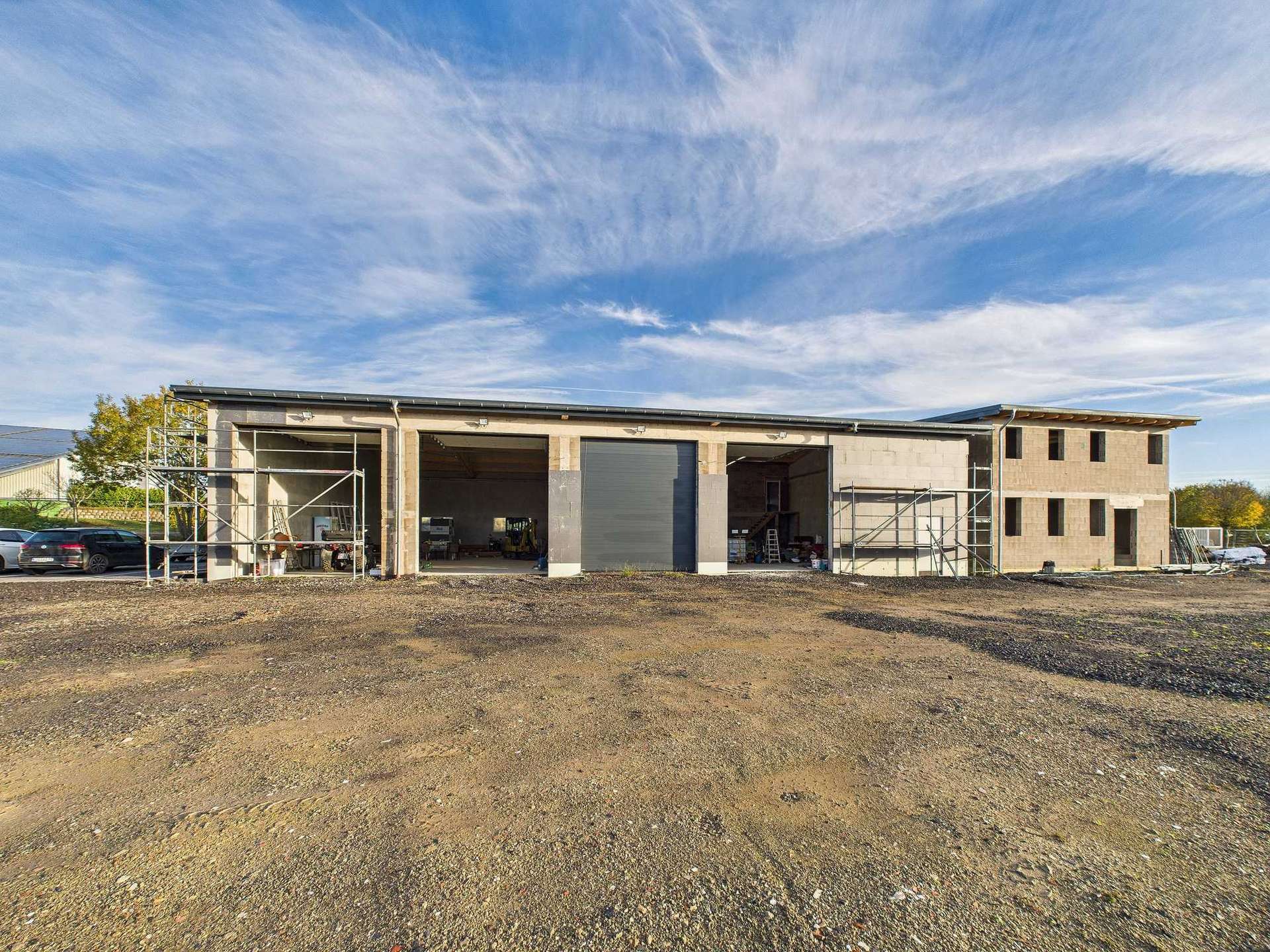 Die Halle und das Bürogebäude wurden im Jahr 2021 massiv errichtet.