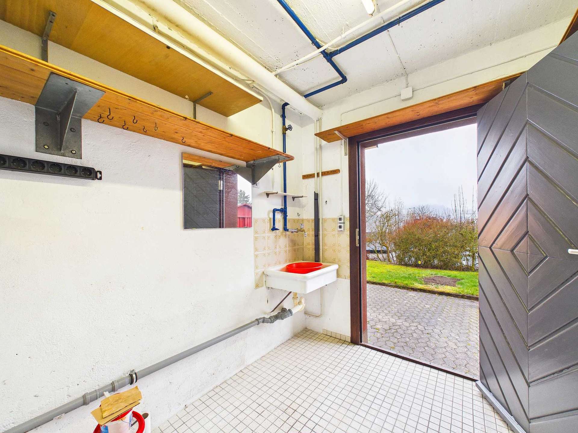 Ebenfalls im Souterrain befinden sich der Heizungsraum, der Öllagerraum sowie der Waschraum mit direktem Zugang zum Garten.