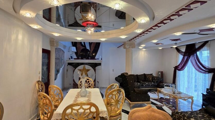 Die hochwertigen Kristalllampen der aufwändigen Deckenbeleuchtung setzen den gesamten Wohn- und Essbereich in ein wahrlich perfektes Licht.