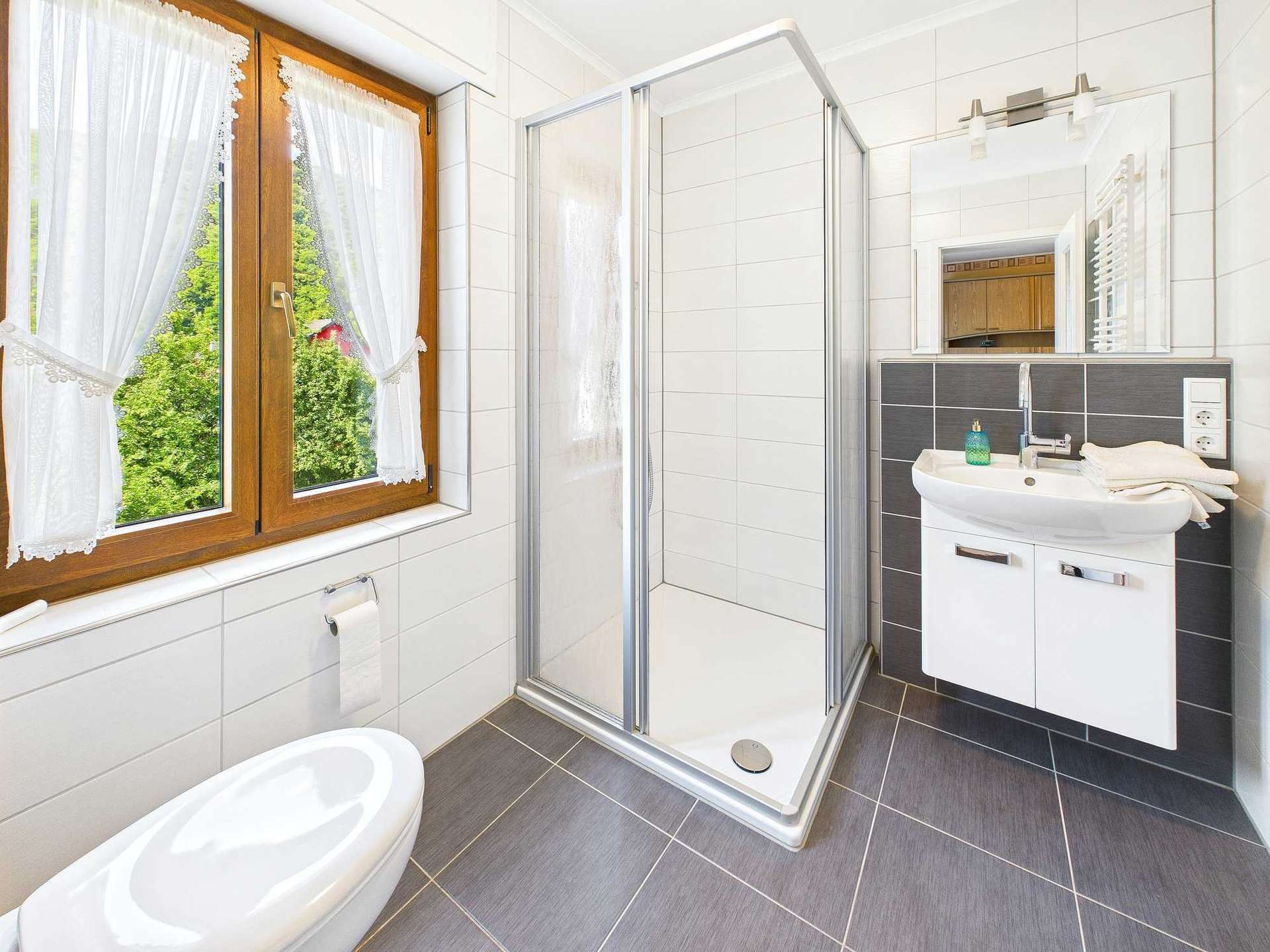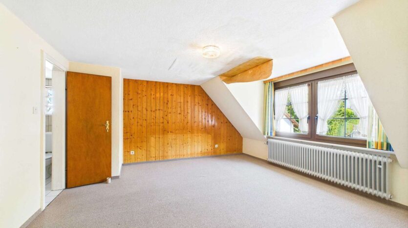 Darüber hinaus bietet der Speicher zusätzlichen Stauraum. Die oberste Geschossdecke sowie die Dachspitze sind gedämmt, was sich positiv auf das Raumklima auswirkt.