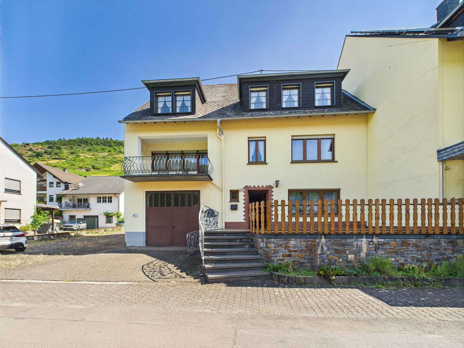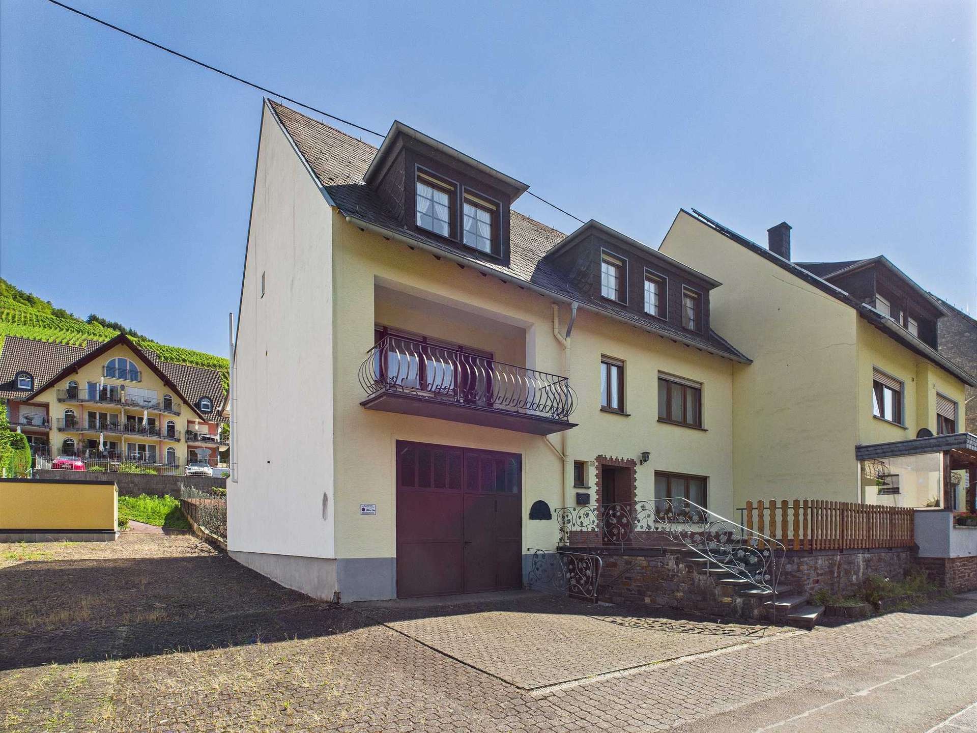 In einer ruhigen Seitenstraße des idyllischen Weinorts Ediger-Eller an der Mosel erwartet Sie dieses charmante und äußerst vielseitige Wohnhaus auf einem ca. 495 m² großen, pflegeleichten Grundstück. Das ursprünglich 1961 errichtete Haus wurde 1967 durch einen großzügigen Anbau erweitert und bietet heute ein enormes Raumangebot für verschiedenste Nutzungskonzepte – ob als Mehrgenerationenhaus, zur teilweisen oder vollständigen Vermietung oder als klassisches Dreifamilienhaus.