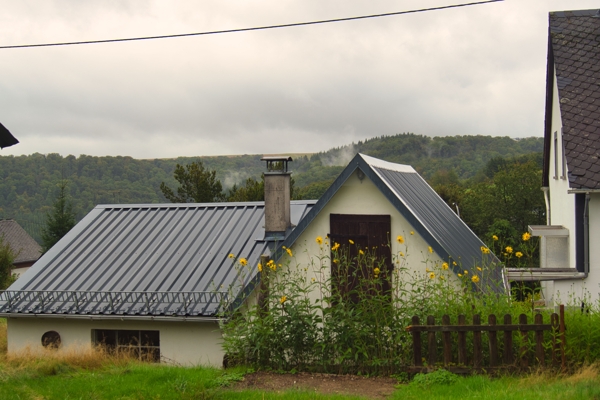 - Trapezblecheindeckung auf Garage aus