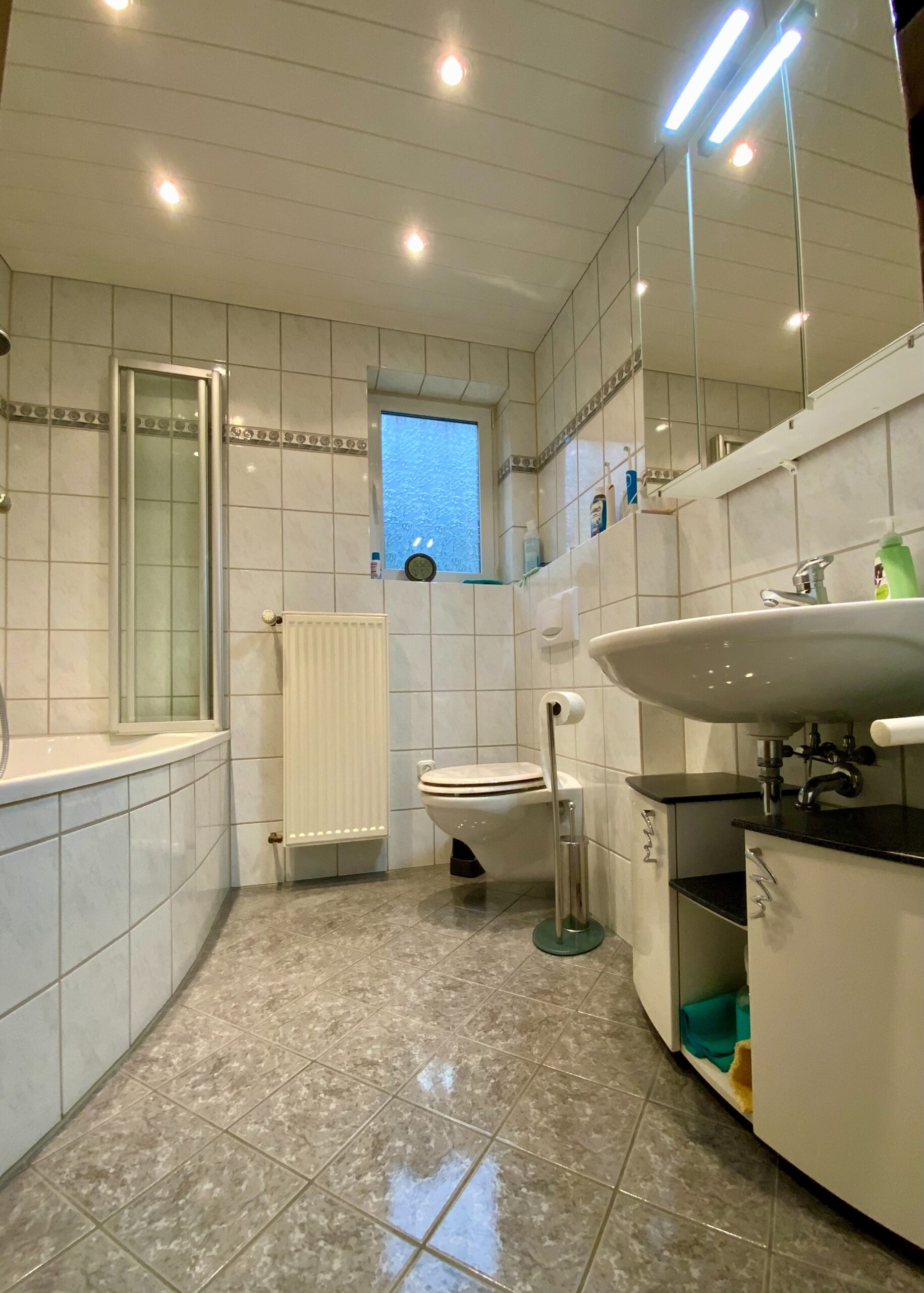 Die Böden sind mit Fliesen ausgestattet.