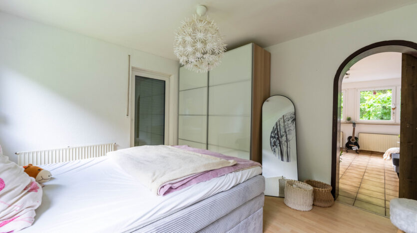 Im Ober- sowie im ausgebauten Dachgeschoss stehen die privaten Wohnräume zur Verfügung. Mit einer Wohnfläche von ca. 89 m² vereinen diese modernen Komfort und behagliche Wohnatmosphäre.