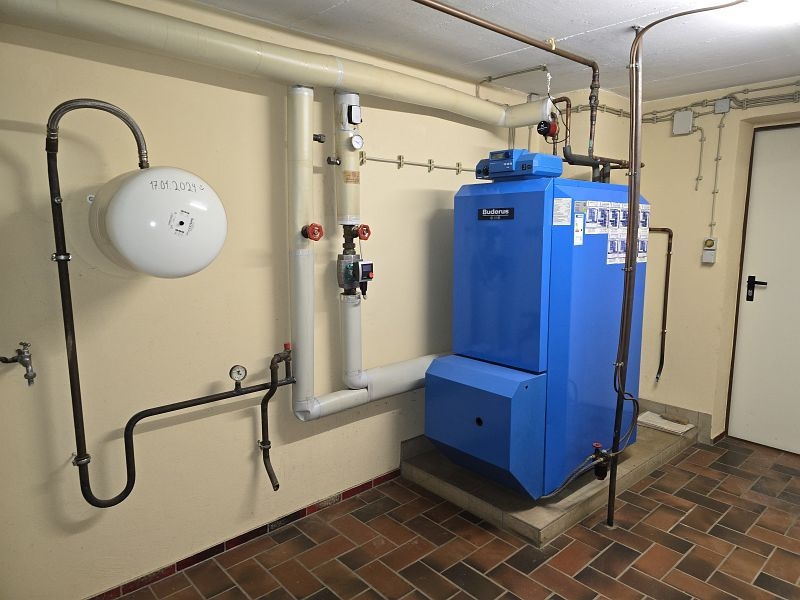 Die gesamte Immobilie ist unterkellert. Hier befinden sich mehrere Abstell- und Lagerräume sowie die Ölzentralheizung mit Niedertemperaturkessel und die dazugehörigen Kunststofftanks.