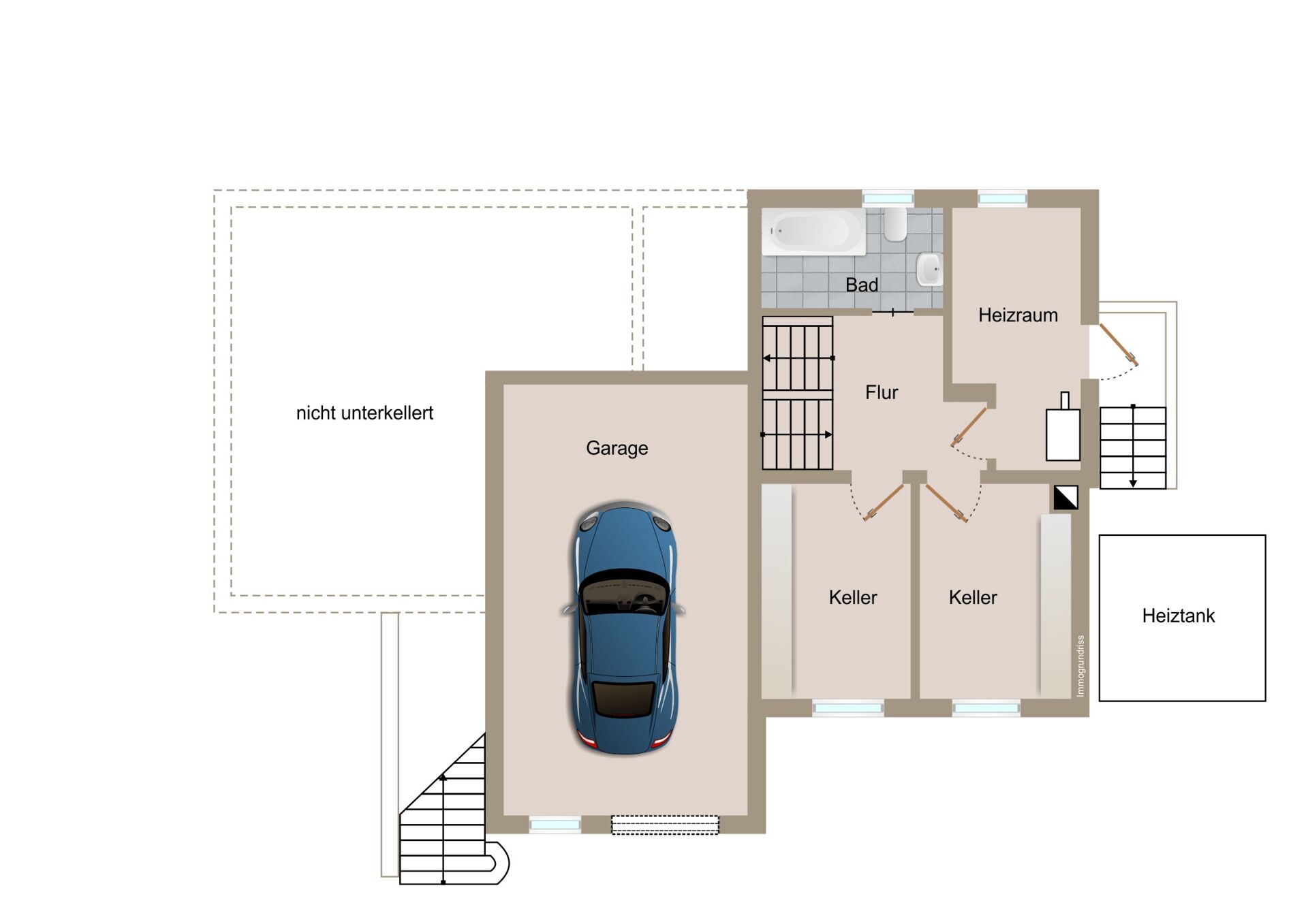 Eine Garage steht zur Verfügung und bietet Platz für ein Fahrzeug sowie zusätzlichen Stauraum. Ein weiterer Stellpatz befindet sich vor der Garage. Weitere Nutz- und Abstellflächen sind im Haus vorhanden.