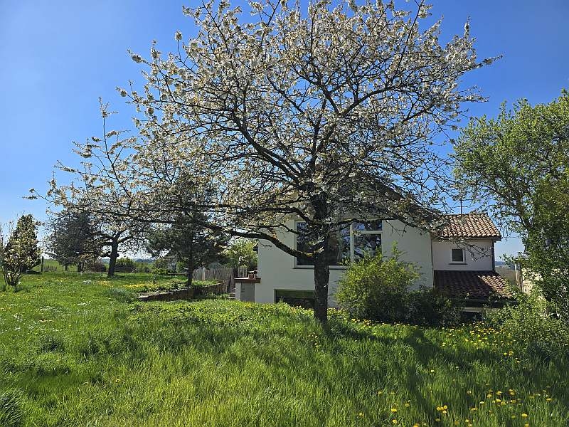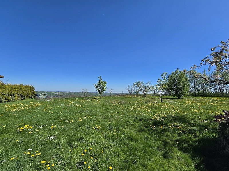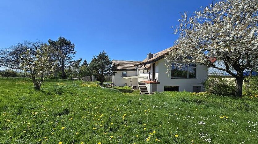 Das ca. 2.540 m² große Grundstück präsentiert sich als echtes Refugium: Weitläufige Grünflächen, zahlreiche Obstbäume und ein unverbaubarer Fernblick schaffen eine Atmosphäre, die jeden Tag wie einen kleinen Urlaub erscheinen lässt. Die liebevoll gewachsene Gartenlandschaft bietet vielfältige Nutzungsmöglichkeiten – ob als Rückzugsort, für Tierhaltung oder zur Selbstversorgung.