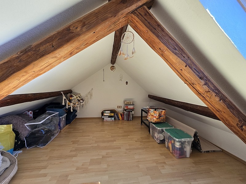 Der energetisch modernisierte und gedämmte Dachboden bietet hervorragende Stauraummöglichkeiten.