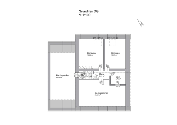 – zusätzliche Schlafzimmer, Badezimmer -Ca 40 m² und Speicherfläche im DG: 25,5 m²