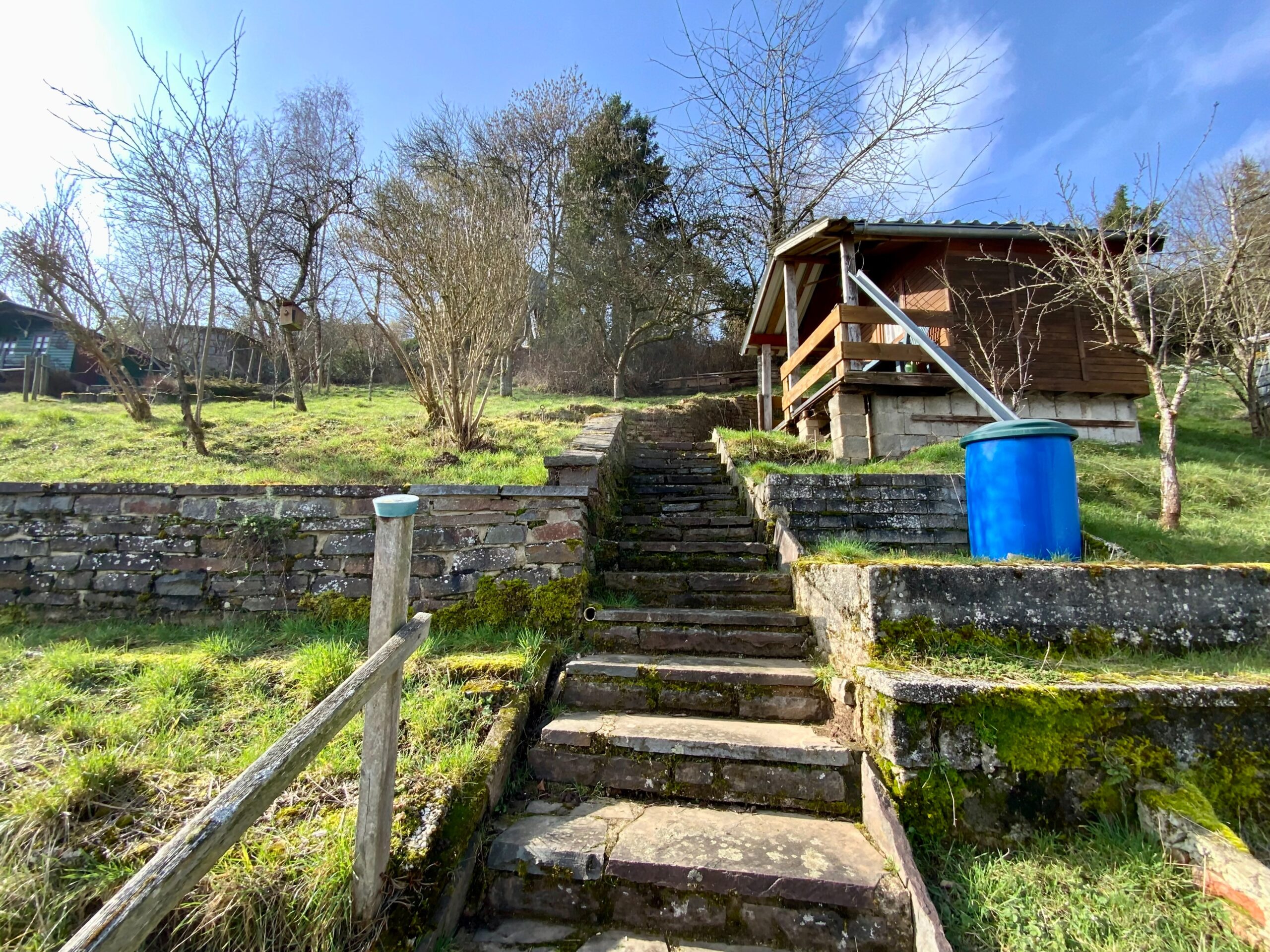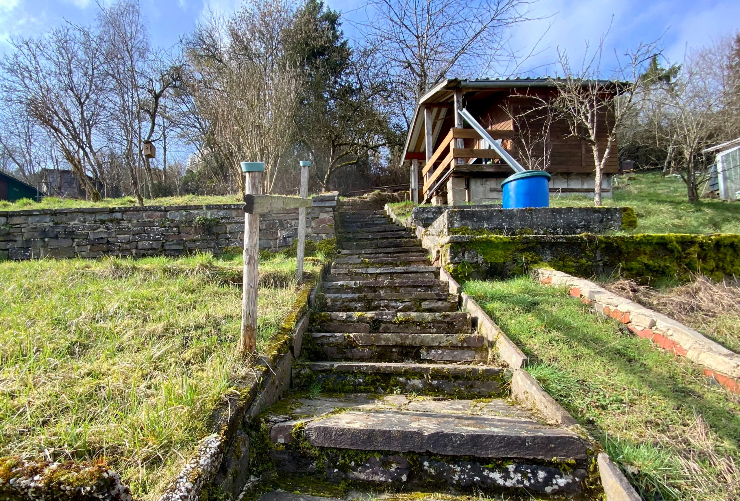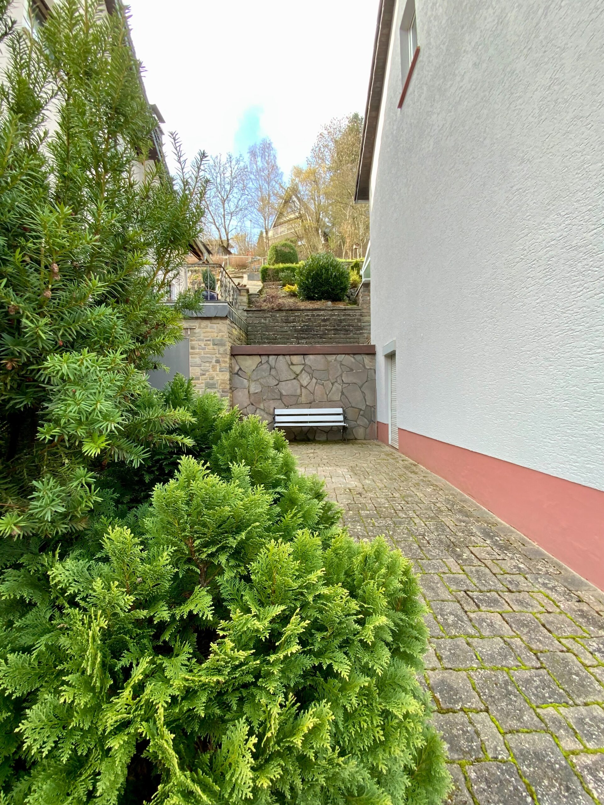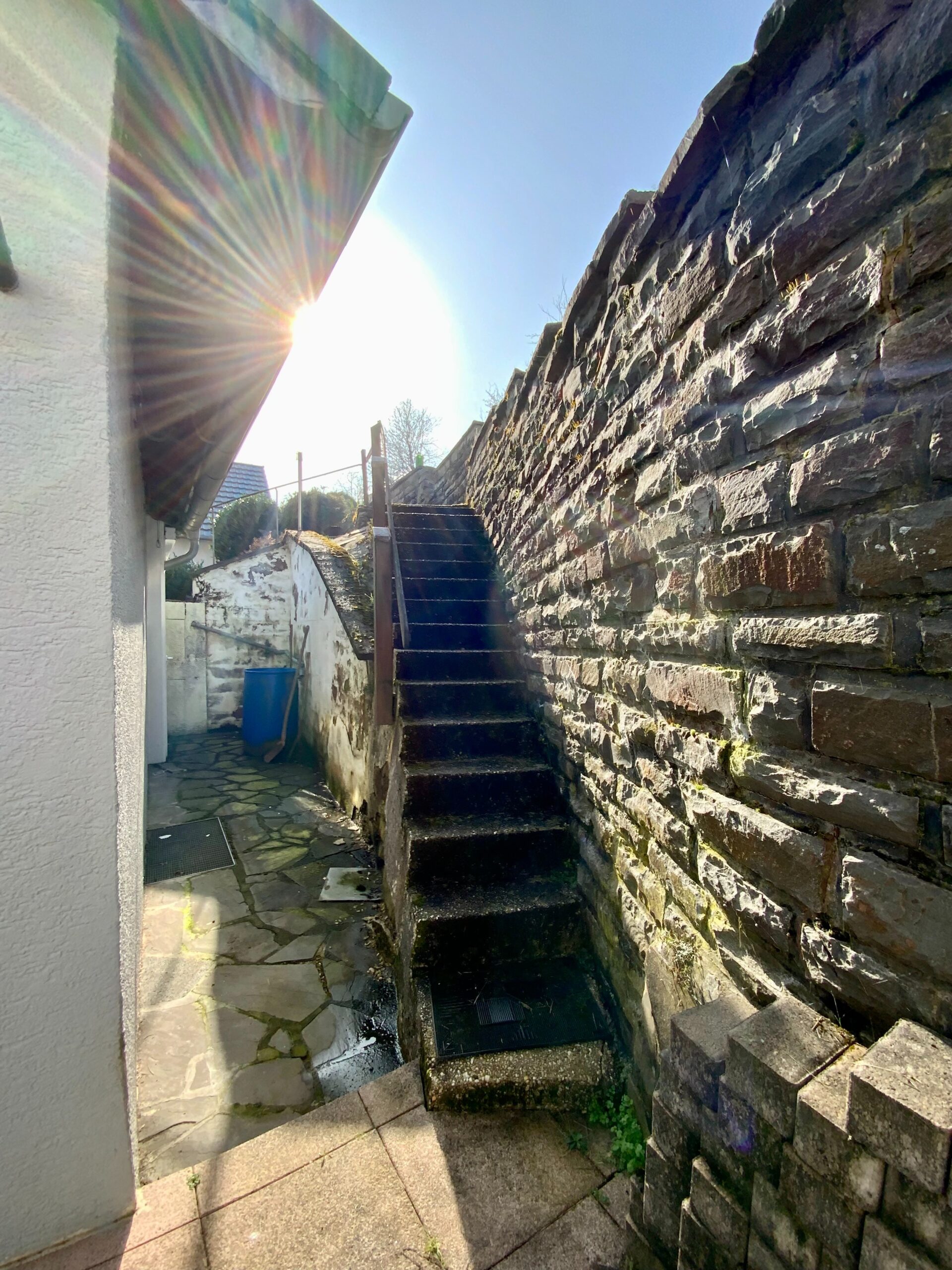 Über eine Natursteintreppe gelangt man auf das Grundstück und im weiteren Verlauf zum