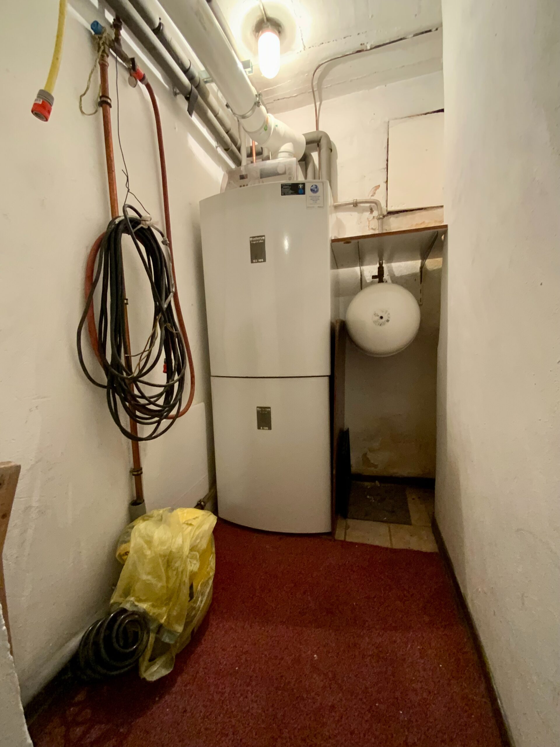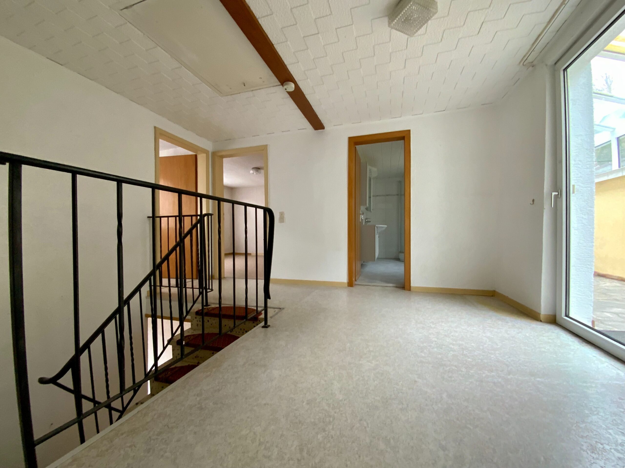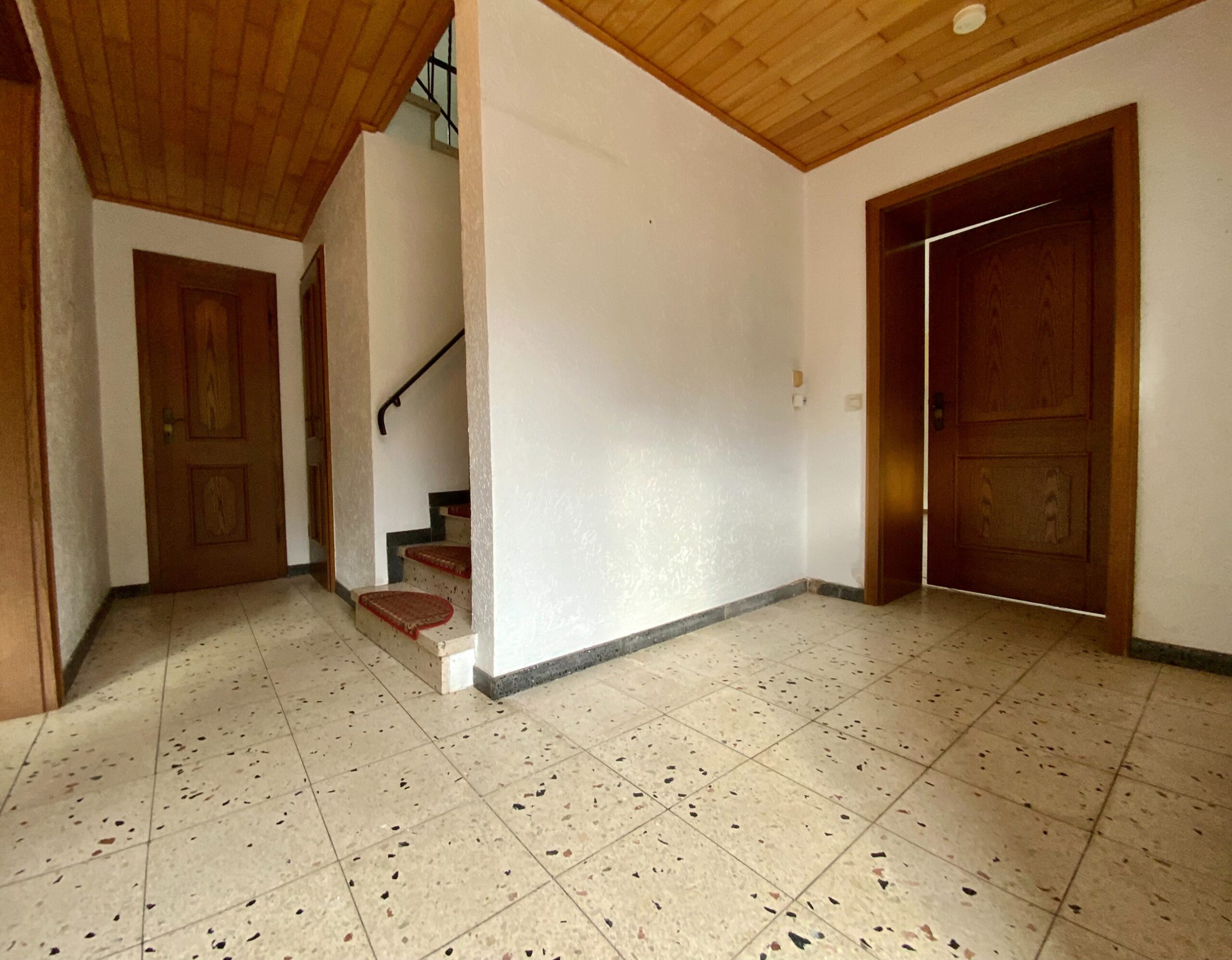 Es besteht die Möglichkeit den Waschraum in ein Badezimmer umzuwandeln, da die Wand zur großen Waschküche ohne Probleme verschoben werden könnte.