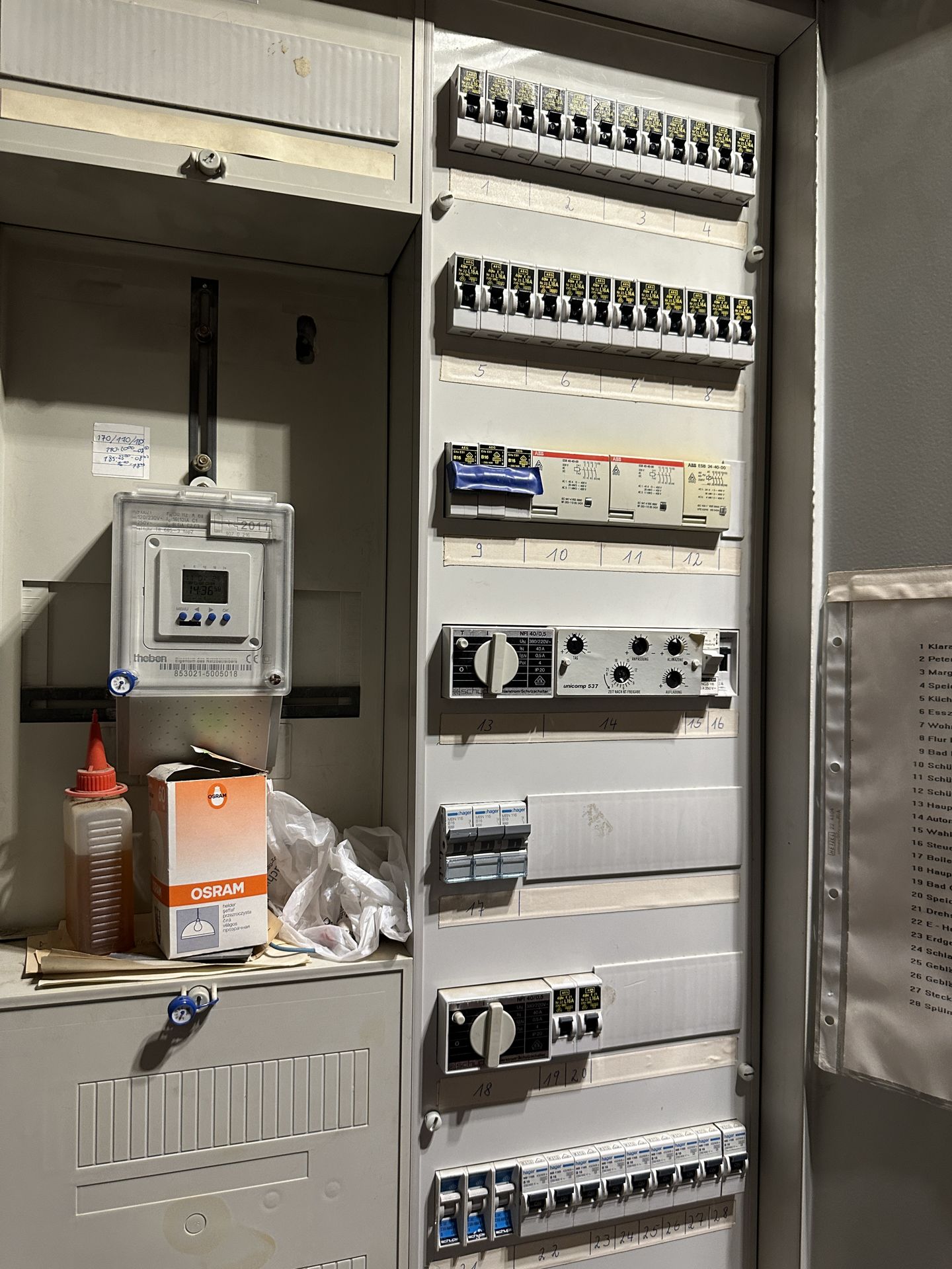 Elektro Nachtspeicheröfen (Kaminofen im Wohnbereich des Erdgeschosses)