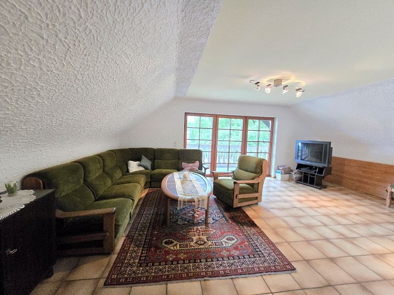 Über eine stilvolle Holztreppe gelangen Sie ins Obergeschoss. Diese Etage kann bei Bedarf als eigenständige Wohneinheit genutzt werden. Insgesamt stehen hier sechs Zimmer unterschiedlicher Größe zur Verfügung, ergänzt durch ein Tageslichtbad und ein Gäste-WC.