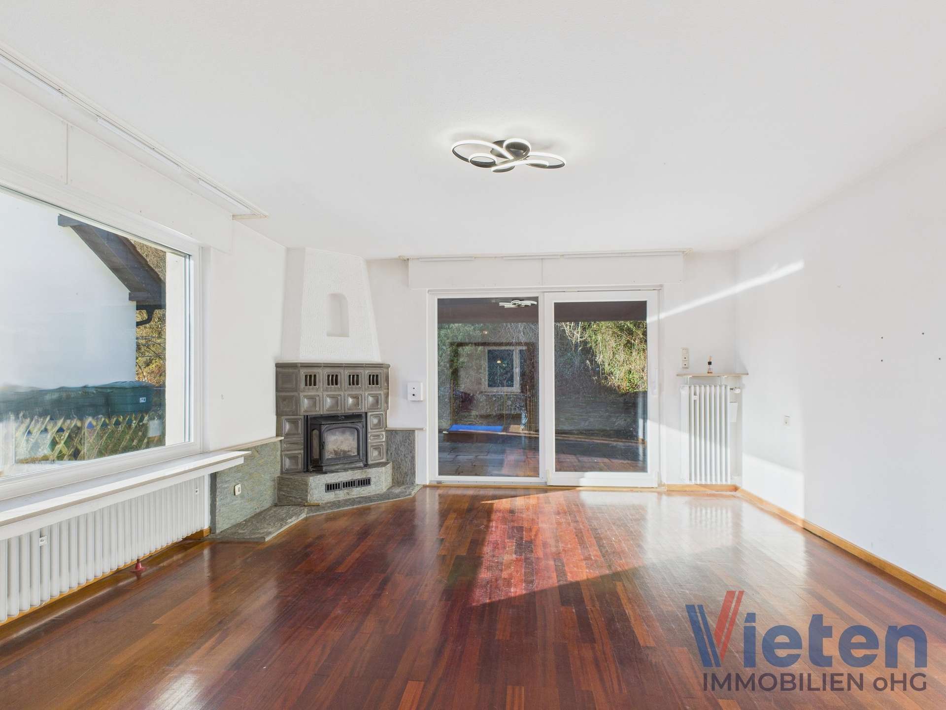 Ein großzügiger Garten mit zwei Terrassen, darunter eine überdachte Westterrasse mit Außenkamin, eine Garage sowie neu geschaffene Stellplätze machen dieses Angebot besonders attraktiv.