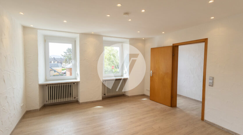 Im Obergeschoss befinden sich zwei helle Zimmer, die sich flexibel als Schlaf-, Kinder- oder Wohnzimmer nutzen lassen.
