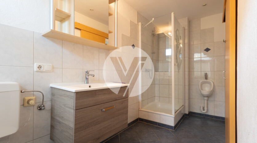 Im Erdgeschoss erwartet Sie ein einladendes Wohn-/Esszimmer mit angrenzender Küche und direktem Zugang zur sonnigen Terrasse – perfekt für entspannte Abende oder gesellige Stunden. Das Tageslichtbad ist mit einer Dusche sowie einem Pissoir ausgestattet.