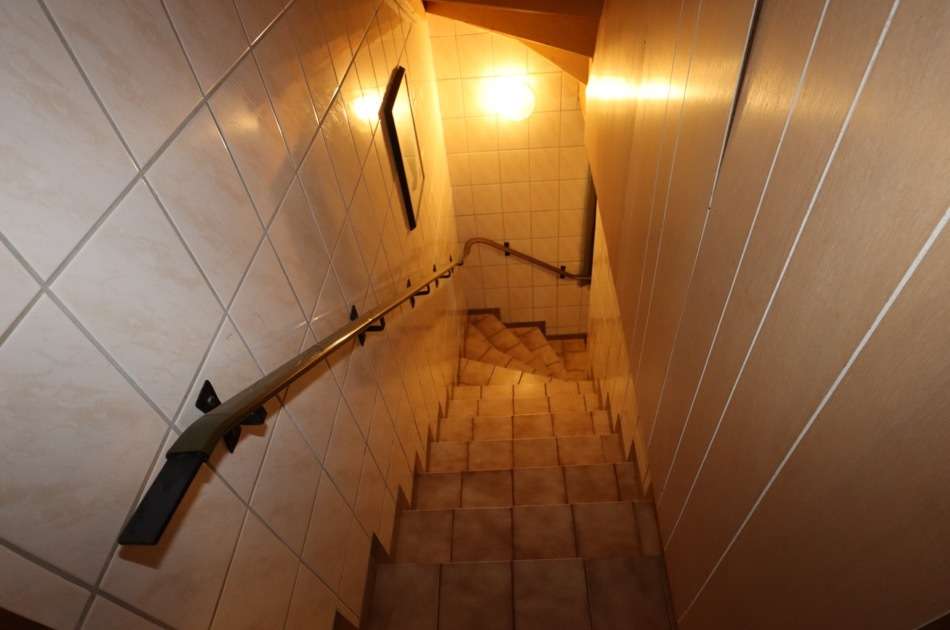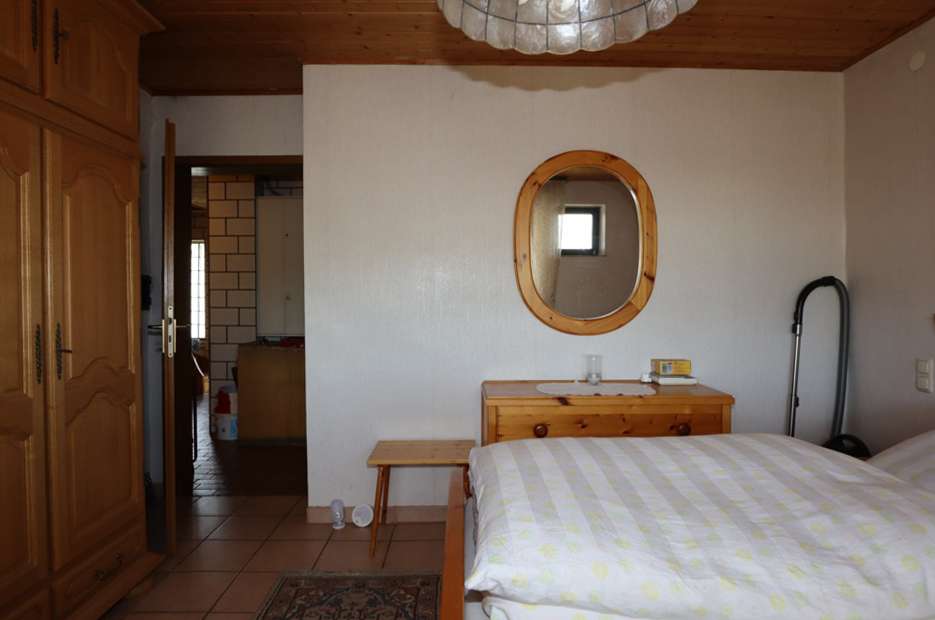 Das Einfamilienhaus wurde 1986 gebaut und 1995 mit einem Wintergarten erweitert. Es bietet im Erdgeschoss eine Wohnfläche von ca. 100 m², die sich derzeit wie folgt aufteilt: Diele mit, Bad mit Badewanne, Dusche und WC, Küche, Schlafzimmer, großes Wohn-/ Esszimmer mit Zugang zum beheizten Wintergarten mit herrlicher Aussicht. Das ausgebaute Dachgeschoss mit ca. 36 m² bietet eine weitere kleine Küche, Bad mit Dusche und WC, Schlafzimmer und Wohnzimmer. Dadurch bietet das Objekt interessante Nutzungsmöglichkeiten. Im Kellergeschoss befinden sich neben einem Kellerraum, Diele mit Abstellraum und Hauswirtschaftsraum ein weiteres Schlafzimmer, Wohnzimmer und Bad. Über den HWR gelangt man direkt in die giebelseitig angebaute Garage.