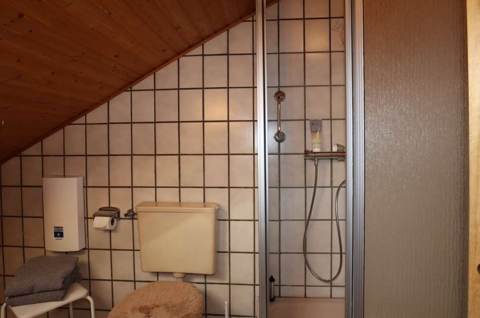 Dachgeschoss: Wohndiele, Bad mit Dusche und WC, Schlafzimmer, Küche
