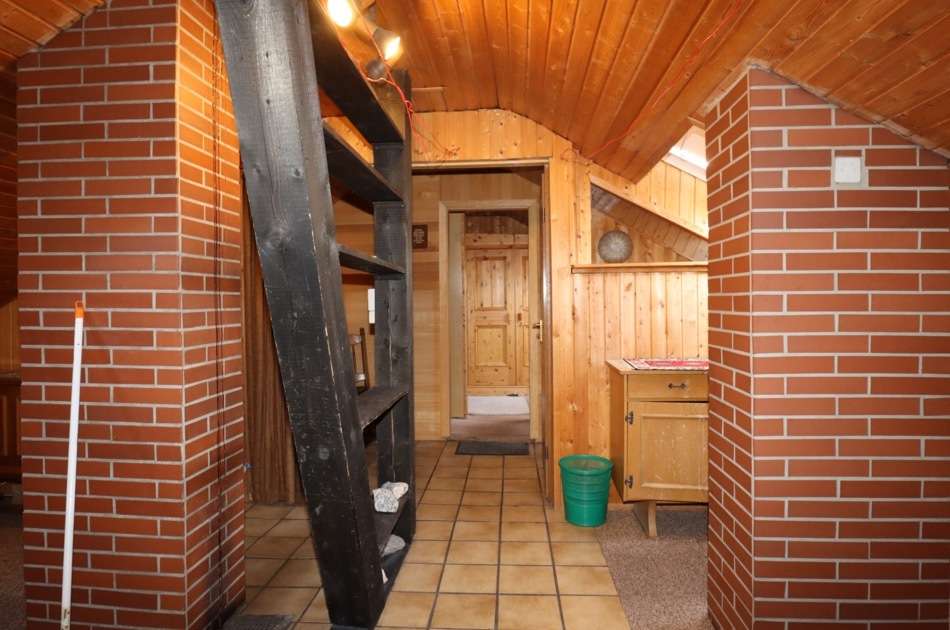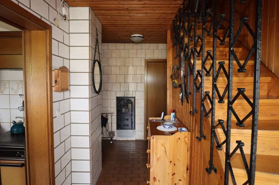Aluminium-/ und Holzfenster. Nachtspeicherheizung (außer Betrieb) und Kachelofen (Kamineinsatz Buderus Bj. 2012). Warmwasser via Durchlauferhitzer. Die Immobilie wird mit Inventar verkauft.