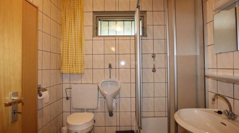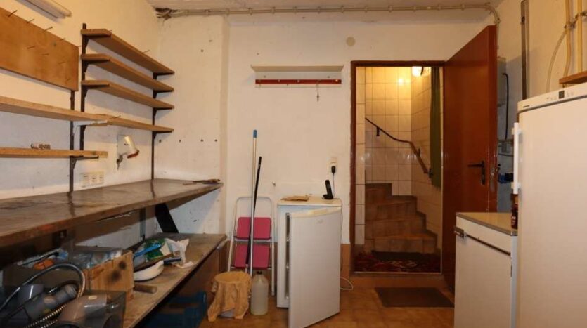 Kellergeschoss: Diele, Wohnzimmer, Schlafzimmer, Bad mit Dusche, WC und Urinal, Abstellraum, Kellerraum, HWR