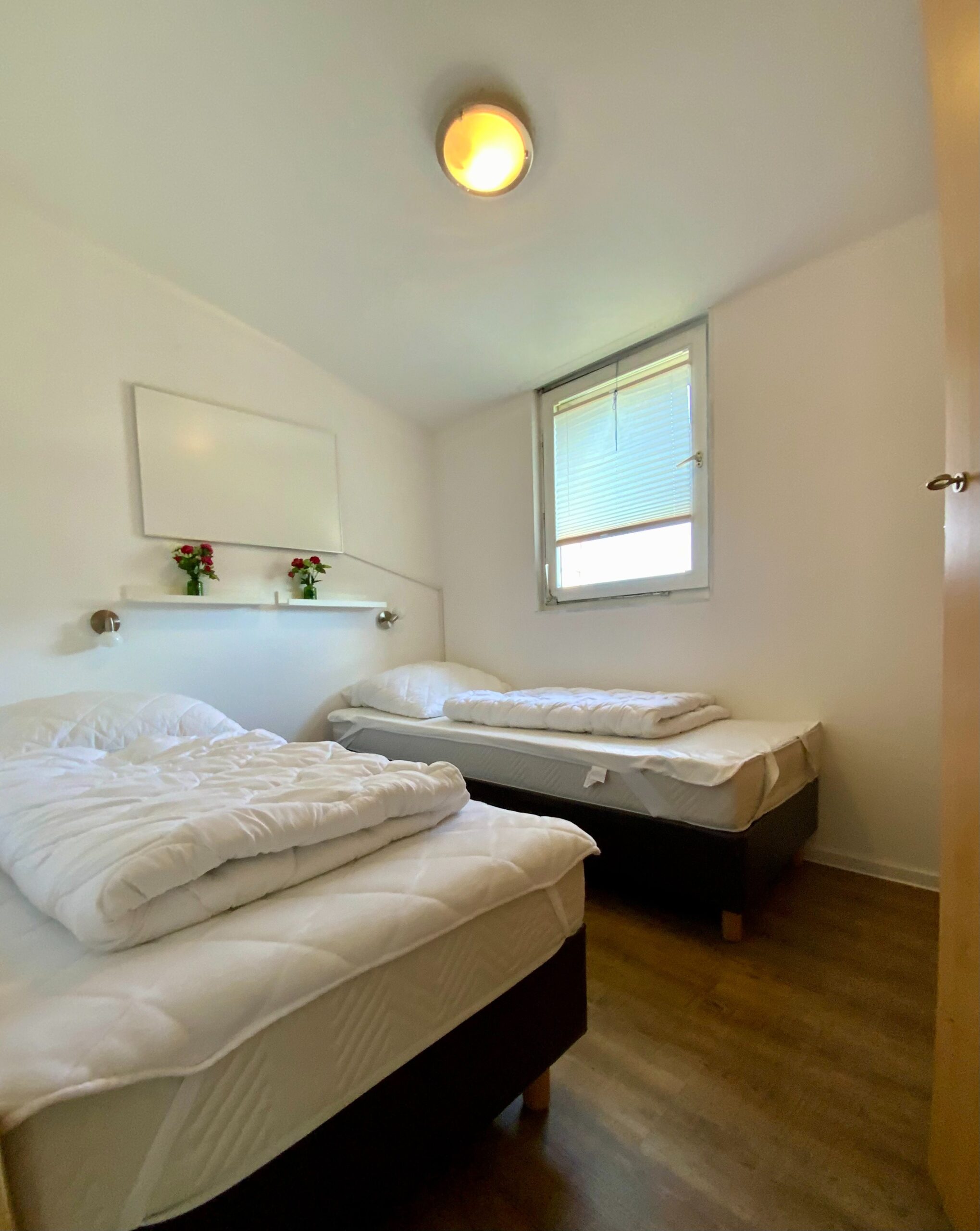Es befinden sich 2 Schlafzimmer im Haus, wovon eines mit 2 Einzelbetten und das andere mit einem Hochbett ausgestattet ist.