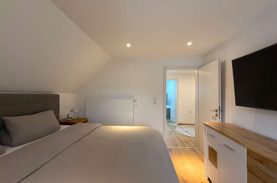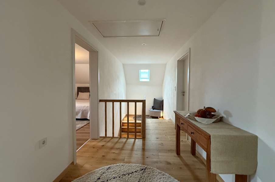 Obergeschoss: Diele, 3 Schlafzimmer, großes Bad mit Badewanne, ebenerdiger Dusche und WC, Ankleide
