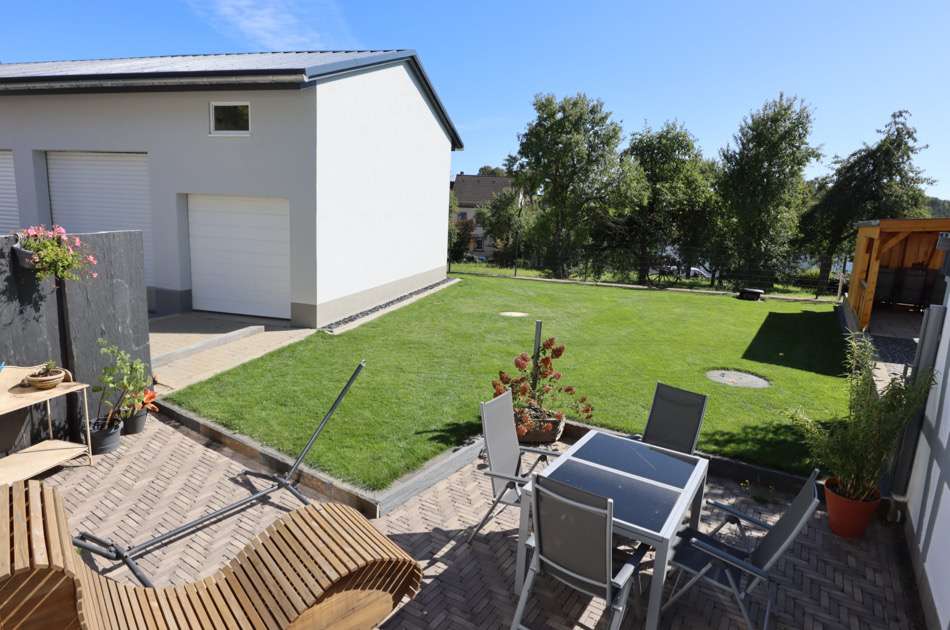 Das Grundstück ist 1029 m² groß. Hinter dem Haus befindet sich eine Sonnenterrasse mit schönem Rasen. Daneben liegen die beiden komplett sanierten Hallen, die sich hervorragend für Platzintensive Hobbys , wie zum Beispiel Oldtimer eignet. Auch für Kunstschaffende könnten die beiden Hallen interessante Nutzungsmöglichkeiten bieten.