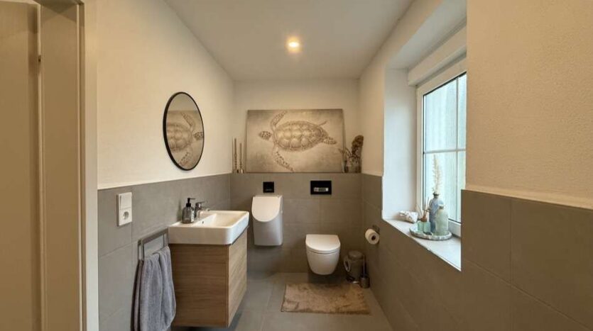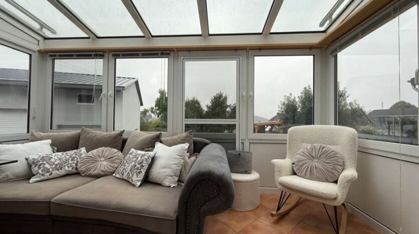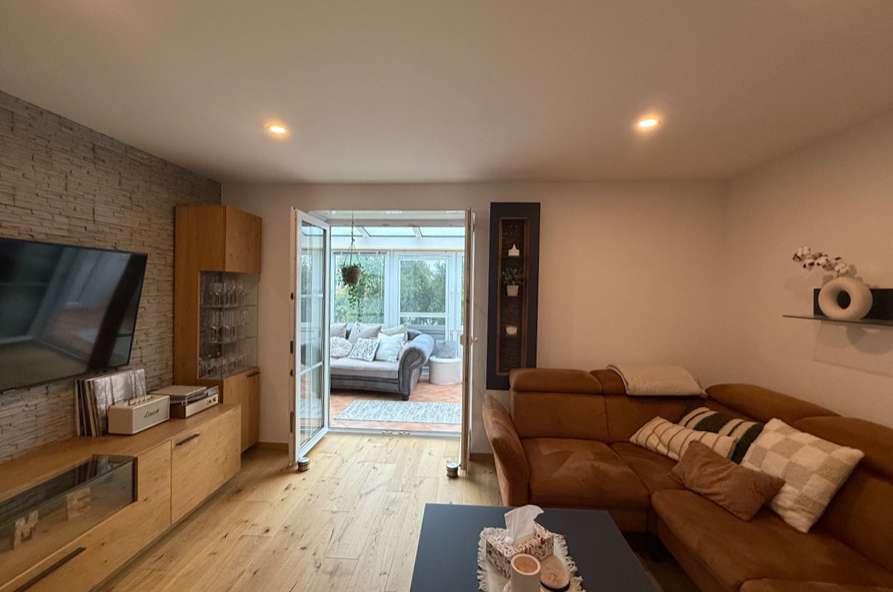 Die Wohnfläche beträgt ca. 133 m². Das Haus verfügt derzeit über 3 Schlafzimmer. Im Erdgeschoss befindet sich die Küche mit gemütlichem Essbereich und Durchgang zum Wohnzimmer, das kuschelige Wohnzimmer mit Zugang zum gemütlichen Wintergarten, ein Arbeitszimmer sowie das Gäste-Bad mit Dusche. Im Obergeschoss befinden sich drei Schlafzimmer, das Hauptbadezimmer sowie ein begehbarer Kleiderschrank. Alle Räume sind hell, freundlich und einladend gestaltet. Hier lässt es sich wohnfühlen! Das Objekt befindet sich in hervorragend gepflegtem, neuwertigem Zustand. Einfach einziehen und wohlfühlen!