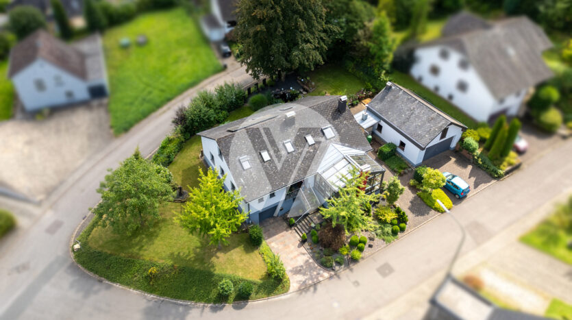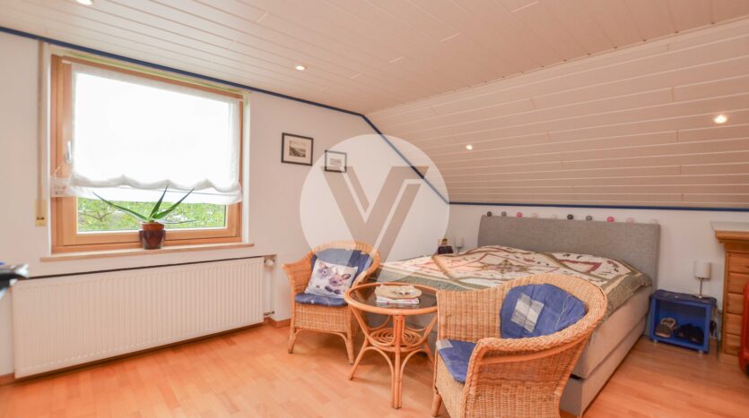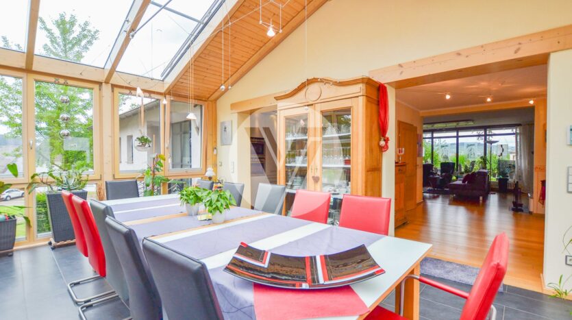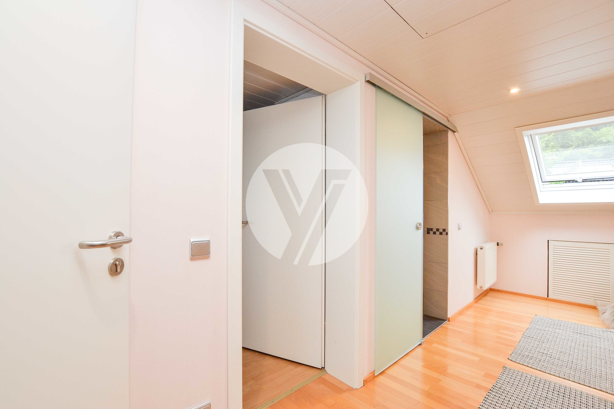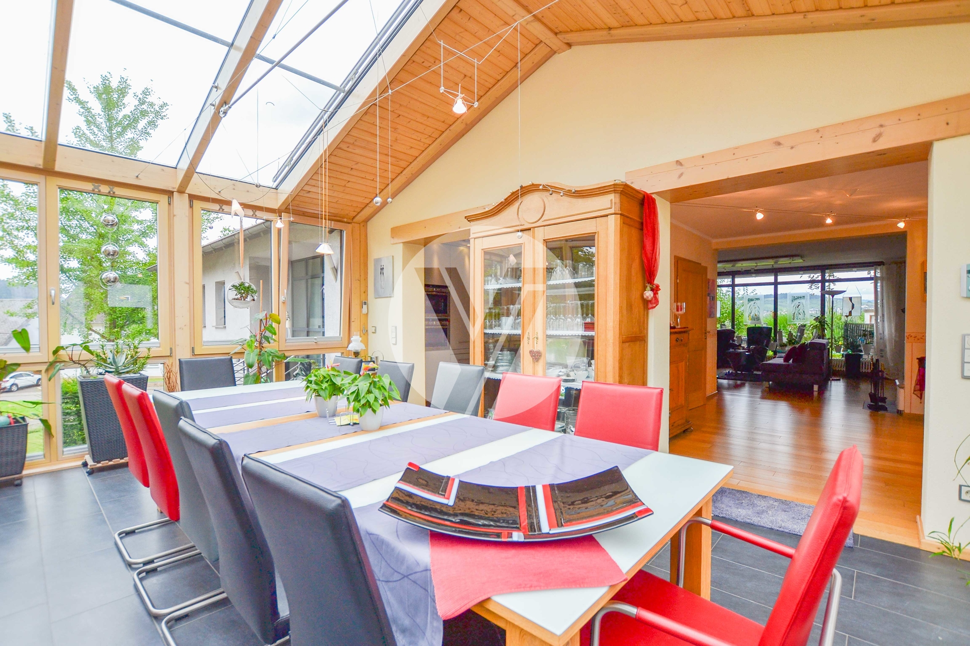 In bevorzugter und sehr ruhiger Höhenlage am Ortsrand von Wasserliesch befindet sich diese geräumige und sehr gepflegte Immobilie. Mit aktuell drei abgeschlossenen Einheiten ist das Haus multifunktional nutzbar und bietet vielfältiges Potential. Eine große, helle Wohneinheit im Erdgeschoss sowie zwei weitere, abgeschlossene Appartement im Dachgeschoss eröffnen Raum für zahlreiche Wohnkonzepte. Komfortables Wohnen im Erdgeschoss und gleichzeitig rentables Vermieten im Obergeschoss ist ebenso denkbar, wie ein Mehrgenerationenkonzept unter einem Dach. Als ebenso lukrativ hat sich die Vermietung der beiden Einheiten im Dachgeschoss sowohl als Ferienappartements, als auch übergangsweise für Monteure und Studenten erwiesen. Die ca. 165m² große Wohneinheit im Erdgeschoss bietet neben einem großzügigen Wohnzimmer, ein helles Esszimmer, die zentrale Küche und einen modernen lichtdurchfluteten Wintergarten. Dieser verbindet Küche mit Wohnraum und bildet somit den lichtdurchfluteten Mittelpunkt der Wohnung. Abgerundet wird dieser Bereich durch ein Gäste-WC und ein kleines Büro- /Gästezimmer. Der Schlafbereich der Wohnung mit großem Doppelzimmer, modernem Wellnessbad und Ankleide ist vom Wohnbereich separiert. Die große überdachte Terrasse kann sowohl aus dem Wohnzimmer, als auch dem Schlafzimmer betreten werden. Eine barrierefreie Erschließung der Erdgeschosswohnung über die Terrasse ist mit geringem Aufwand denkbar.