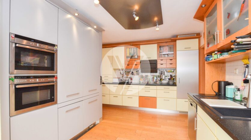– Grote dubbele garage met zwaar plafond (volgens bouwkundig ontwerp) en goederenlift