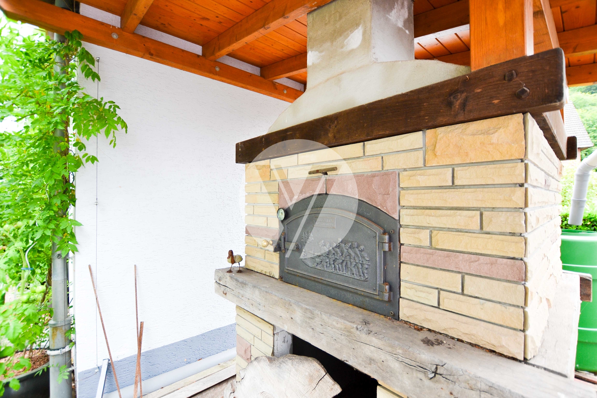 Das große sonnige Grundstück mit schönem Baumbestand ist sehr gepflegt und liebevoll angelegt. Neben der großen überdachten Terrasse bietet ein Naturteich mit Wasserlauf ein einzigartiges Ambiente für maximale Erholung und Entspannung. Ein gemauerter, überdachter Steinbackofen lädt ein zu besonderen Genüssen und schönen Stunden mit Familie und Gästen. Eine große Doppelgarage mit Lastenaufzug und Schwerlastdecke (lt.Statik) bietet ausreichend Platz für Ihre Fahrzeuge mit viel Spielraum für Hobby und Freizeit. Das Wohngebäude ist vollständig unterkellert. Auch hier im Untergeschoss befindet sich eine zusätzliche große Garage. Des Weiteren verfügt das großzügige Untergeschoss über Kellerräume, einen großen Hauswirtschafts- und Hobbyraum mit zusätzlicher Toilette, sowie den Technikraum nebst Öllager der zusätzlichen Heizung.