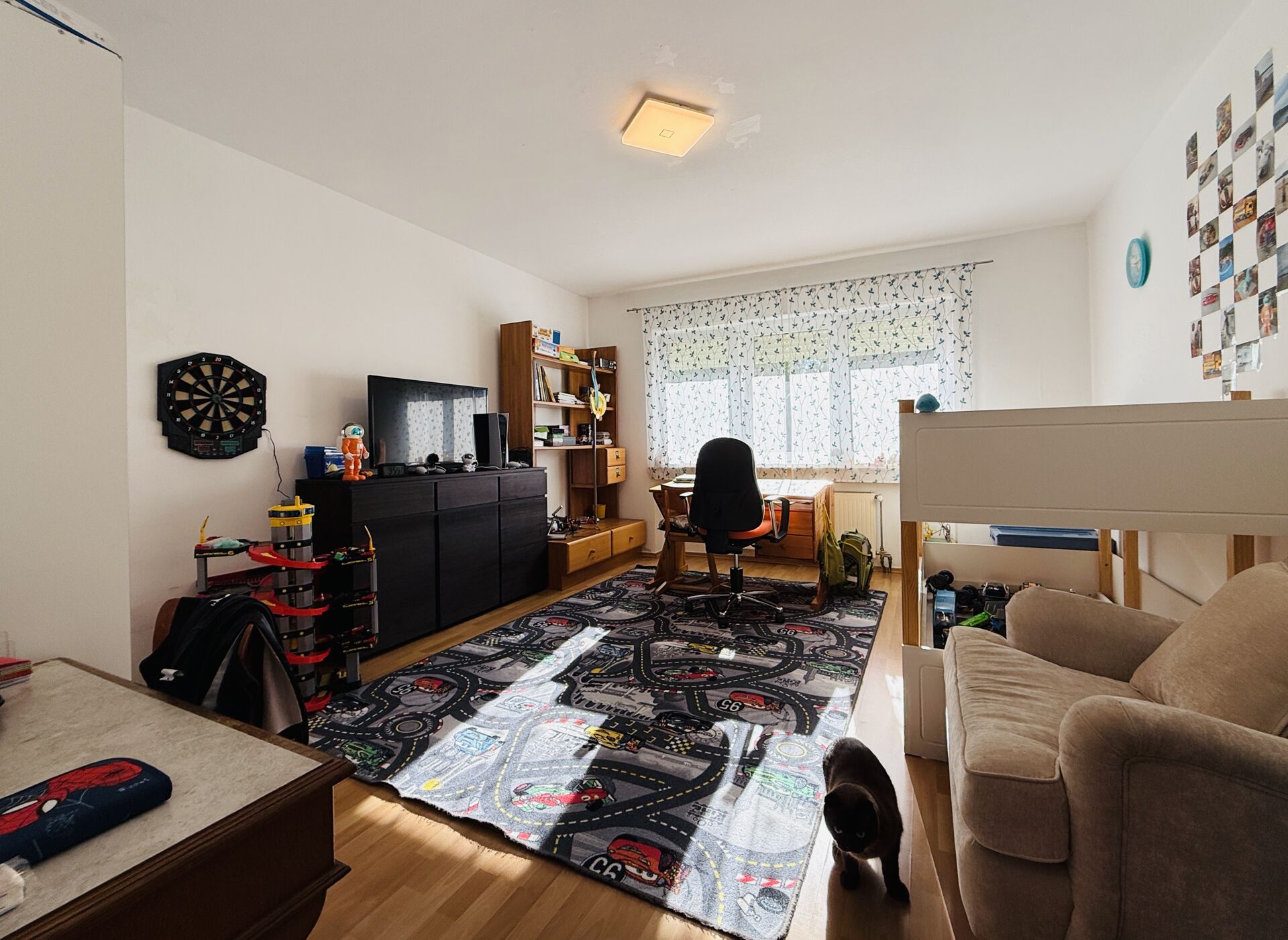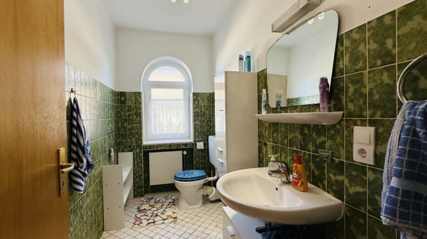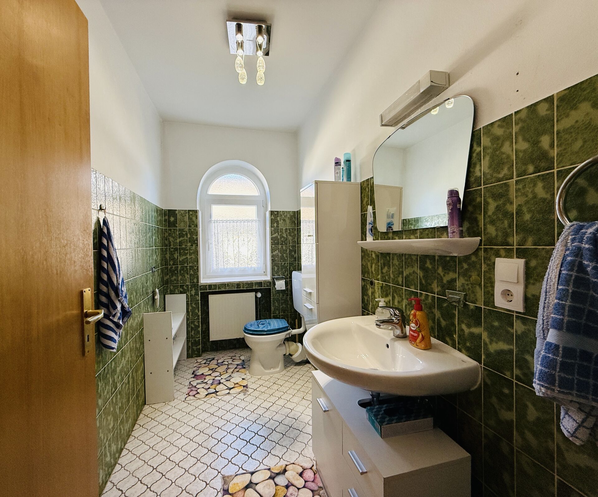 Im Untergeschoss befindet sich ein separater Bereich mit eigenem Zugang. Diese Fläche von ca. 56 m² unterteilt sich in 3 Zimmer, eines davon mit vorhandenen Küchenanschlüssen, sowie ein Duschbad. Ideal als Gästewohnung, für ein älteres Kind oder als Büro.
