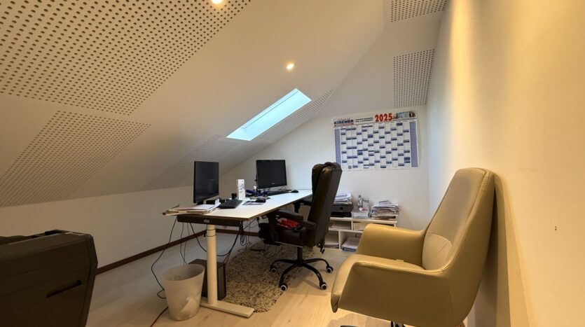 Im Dachgeschoss befindet sich eine zusätzliche, grozügige Ausbaureserve. Der Bereich wurde vollständig gedämmt und verfügt bereits über ein kleines Büro.