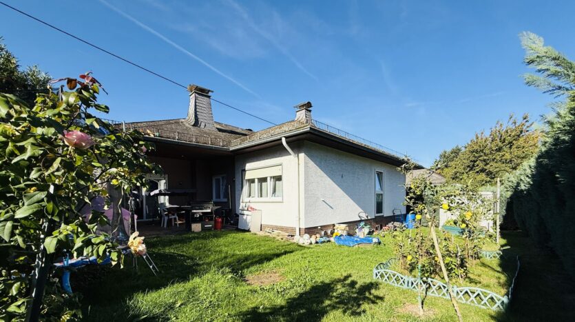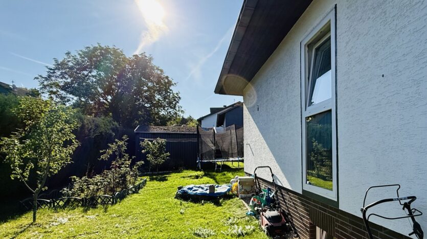 Der Hauptwohnbereich (Erdgeschoss) verfügt über großzügige und helle Räume. Die Wohnfläche von ca. 130 m² verteilt sich auf einen Wohn-/Essbereich mit Zugang zur Terrasse und dem Garten, eine Küche mit Abstellraum, zwei Schlafzimmer und ein Bad sowie ein Gäste-WC.