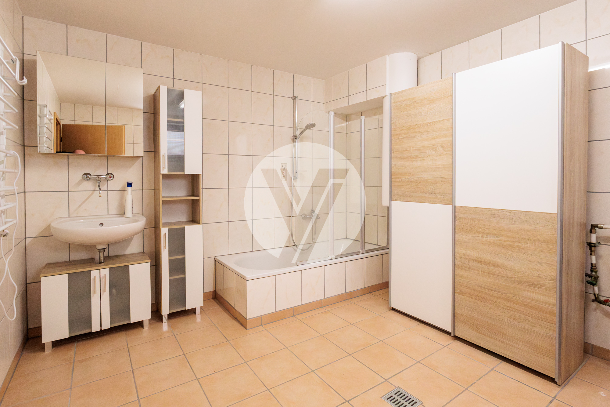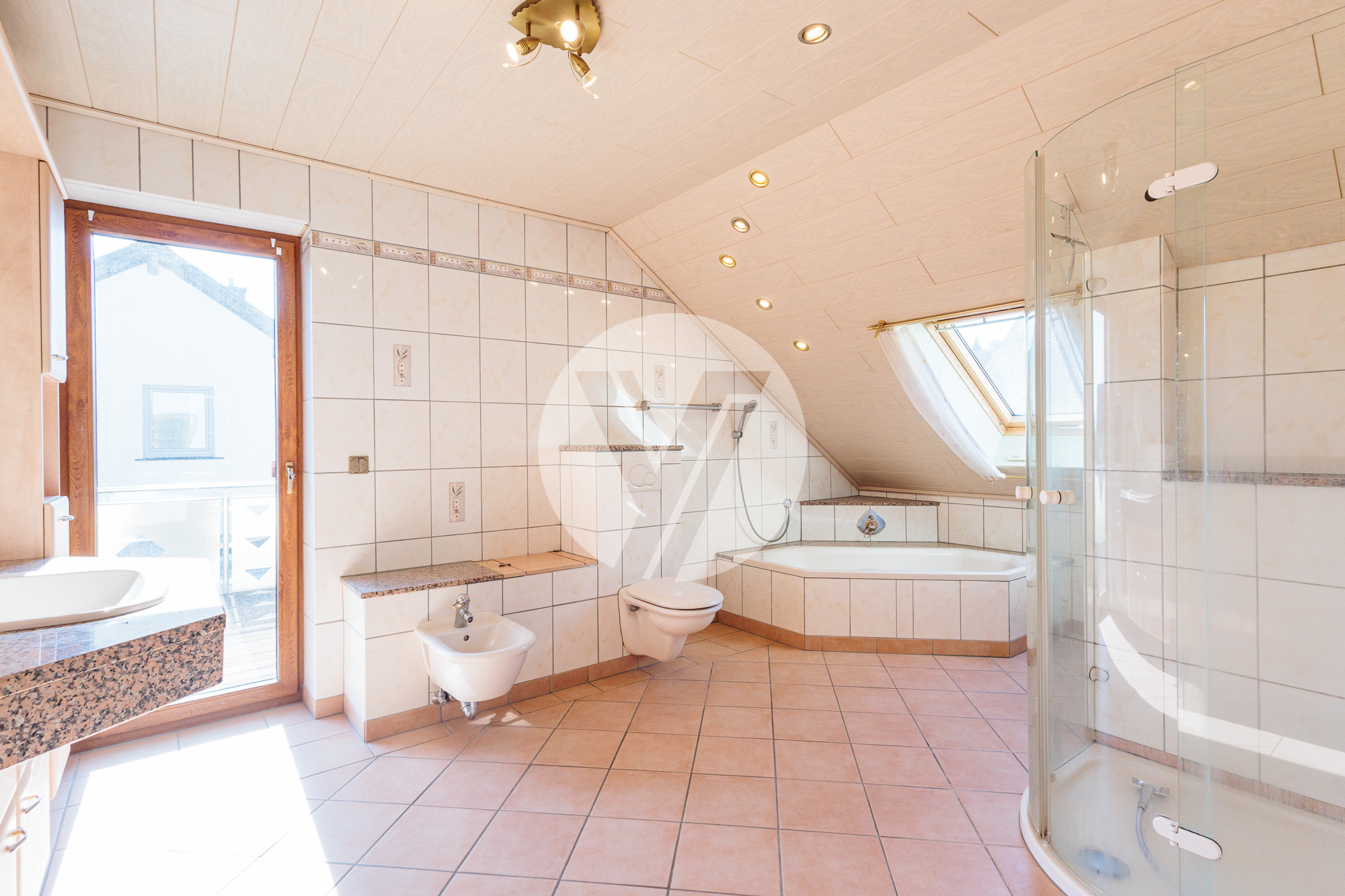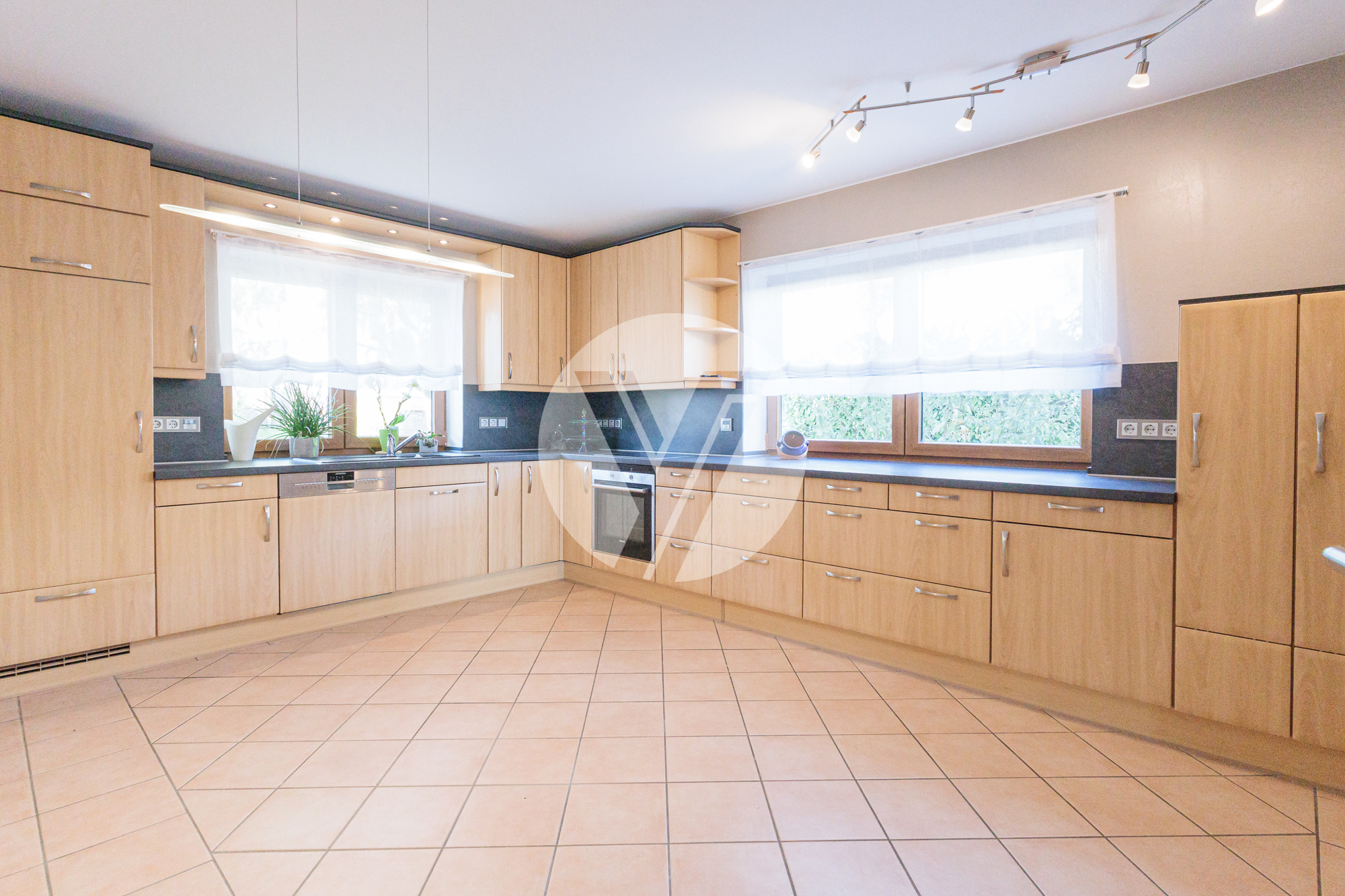 Dieses Haus bietet viel Platz für anspruchsvolle Individualisten und idealen Raum für Großfamilien oder einen Mehrgenerationenhaushalt. Die durchdachte Architektur sorgt dafür, dass jede Fläche optimal genutzt werden kann. Auch die Vollunterkellerung des Gebäudes sowie die Unterkellerung von Garage und Terrasse ermöglichen vielfältige Nutzungsmöglichkeiten, sodass keine Wünsche offen bleiben.