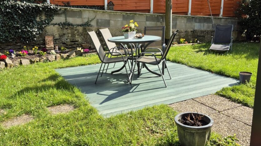 - zusätzlicher Anbau einer Terrasse und Ausgang zum Garten aus der Dachgeschosswohnung ist genehmigt, nur noch nicht gebaut