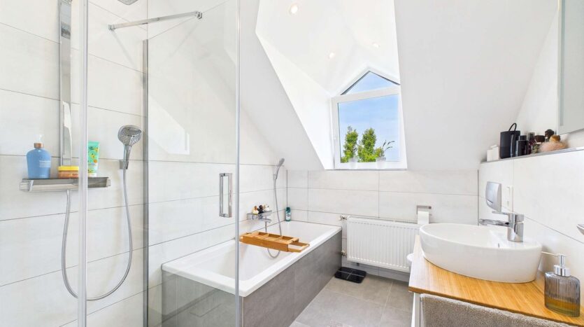 Das ausgebaute Dachgeschoss, erreichbar über eine Wendeltreppe, bietet zusätzliche Wohnfläche – perfekt als Homeoffice, Gästezimmer oder Rückzugsort.