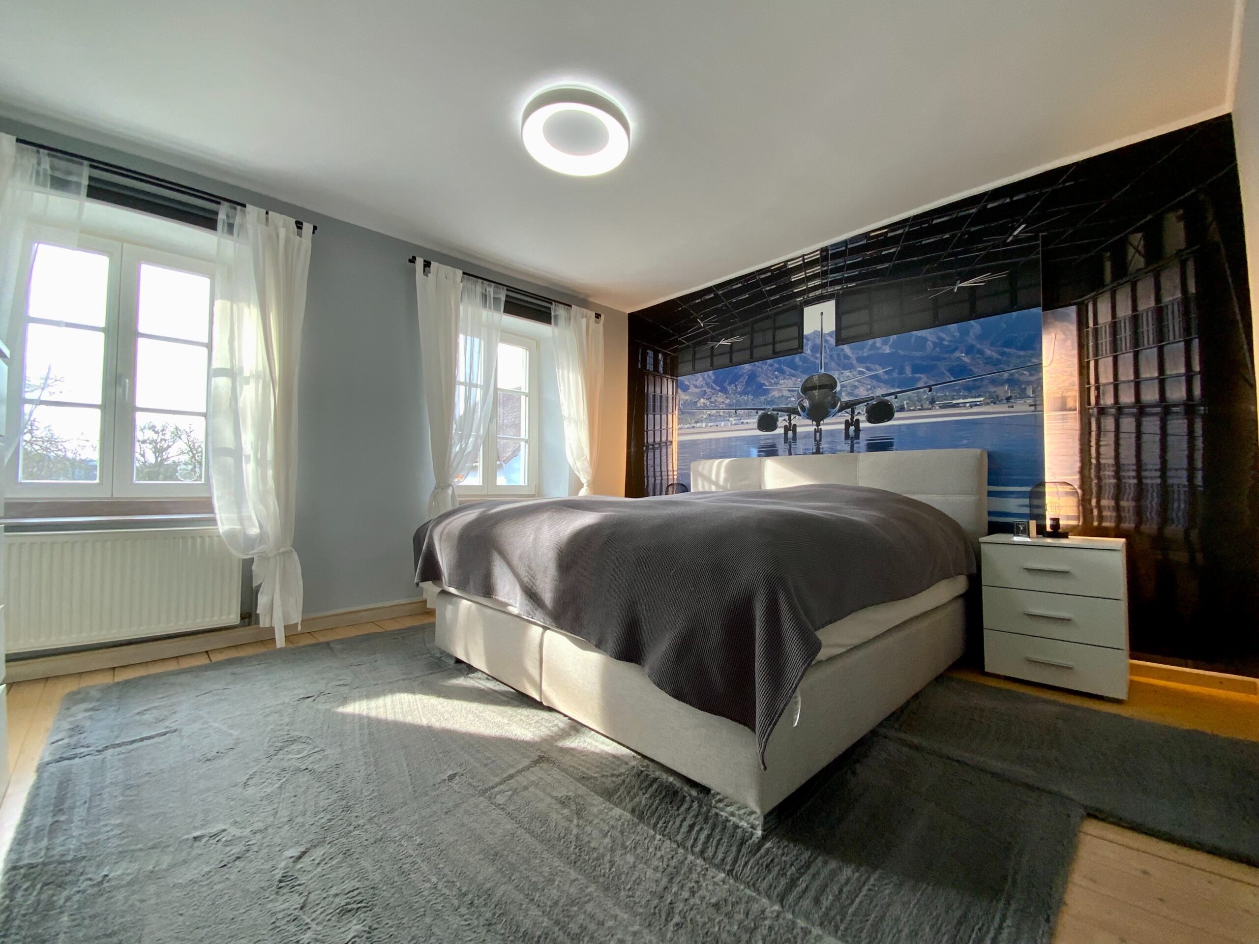 Im Obergeschoss befinden sich eine Mitarbeiter-/Gästewohnung von ca. 116 m² und das Obergeschoss vom Loft ca. 74 m².